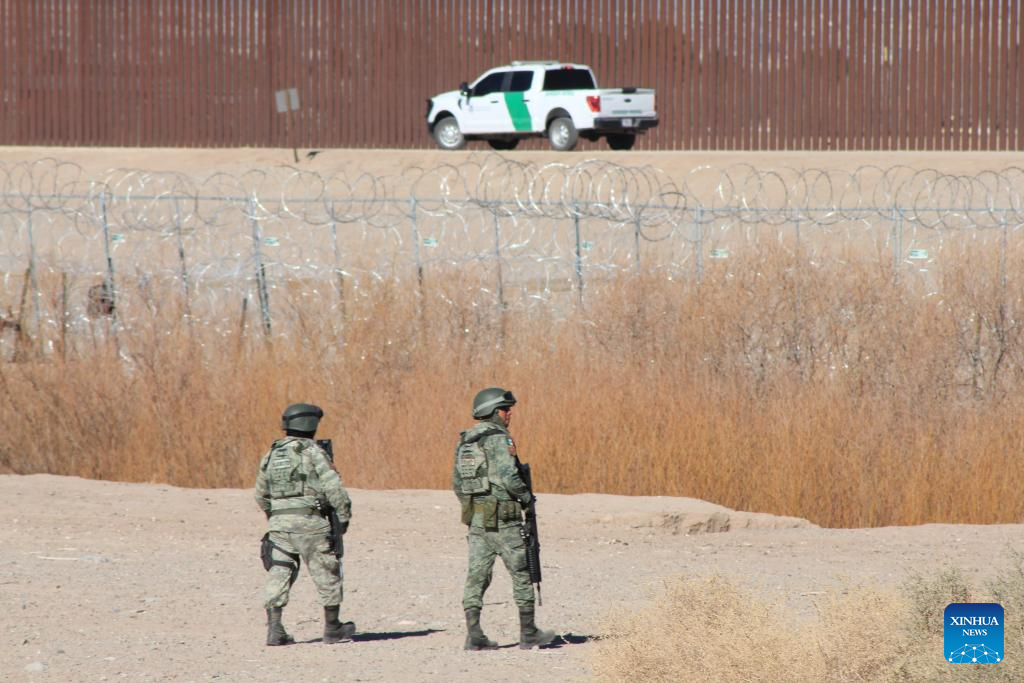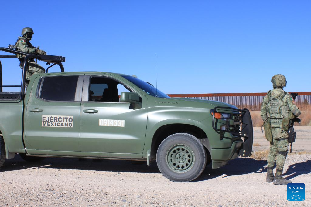 Soldiers of the Mexican Army are on duty on the border between Mexico and the United States, in Ciudad Juarez, state of Chihuahua, Mexico, on Feb. 6, 2025. Mexican President Claudia Sheinbaum confirmed on Tuesday that 10,000 National Guard troops have begun deployment along the 3,200-km border with the United States.