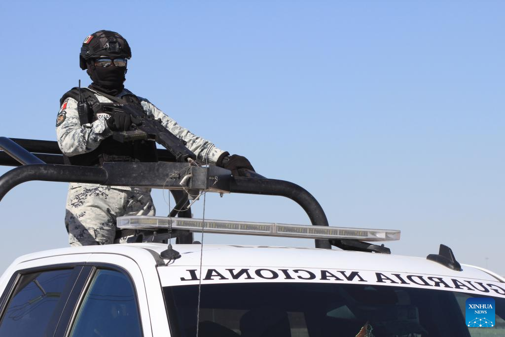Mexican National Guard troops are on duty on the border between Mexico and the United States, in Ciudad Juarez, state of Chihuahua, Mexico, on Feb. 6, 2025. Mexican President Claudia Sheinbaum confirmed on Tuesday that 10,000 National Guard troops have begun deployment along the 3,200-km border with the United States.