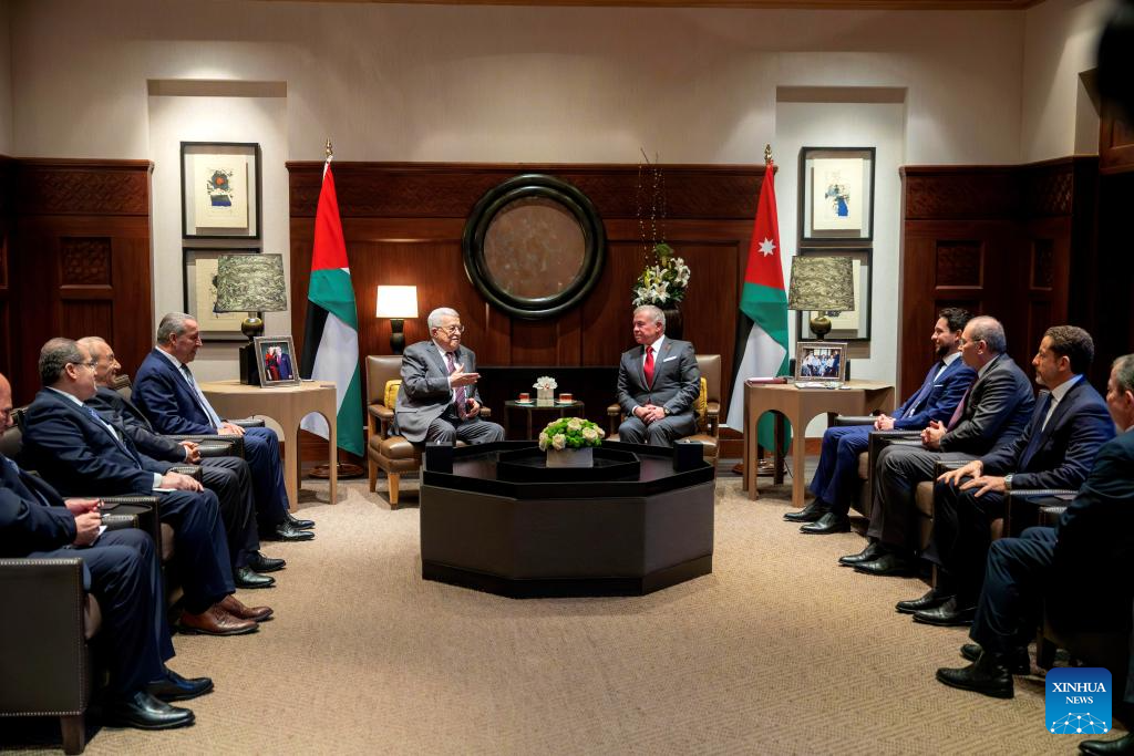 Jordan's King Abdullah II, in a meeting with Palestinian President Mahmoud Abbas in Amman, rejected any attempts to annex land or displace Palestinians. The king also reiterated Jordan's support for the Palestinian people in securing their legitimate rights. (Royal Hashemite Court/Handout via Xinhua)