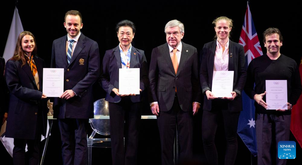 MILAN, Feb. 6 (Xinhua) -- The International Olympic Committee (IOC) on Thursday officially started the one-year countdown to the opening of the Milan-Cortina Winter Olympics with the unveiling of a countdown clock and a symbolic invitation for the world's best athletes to participate.