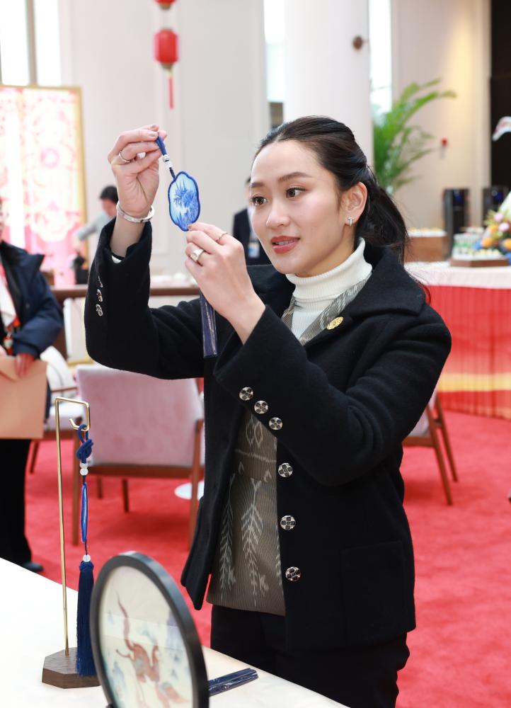 Before the banquet, the guests toured a display showcasing Heilongjiang's intangible cultural heritage. (Xinhua/Yan Yan)