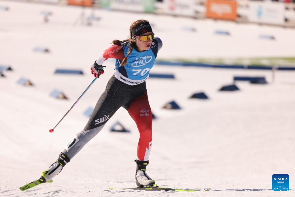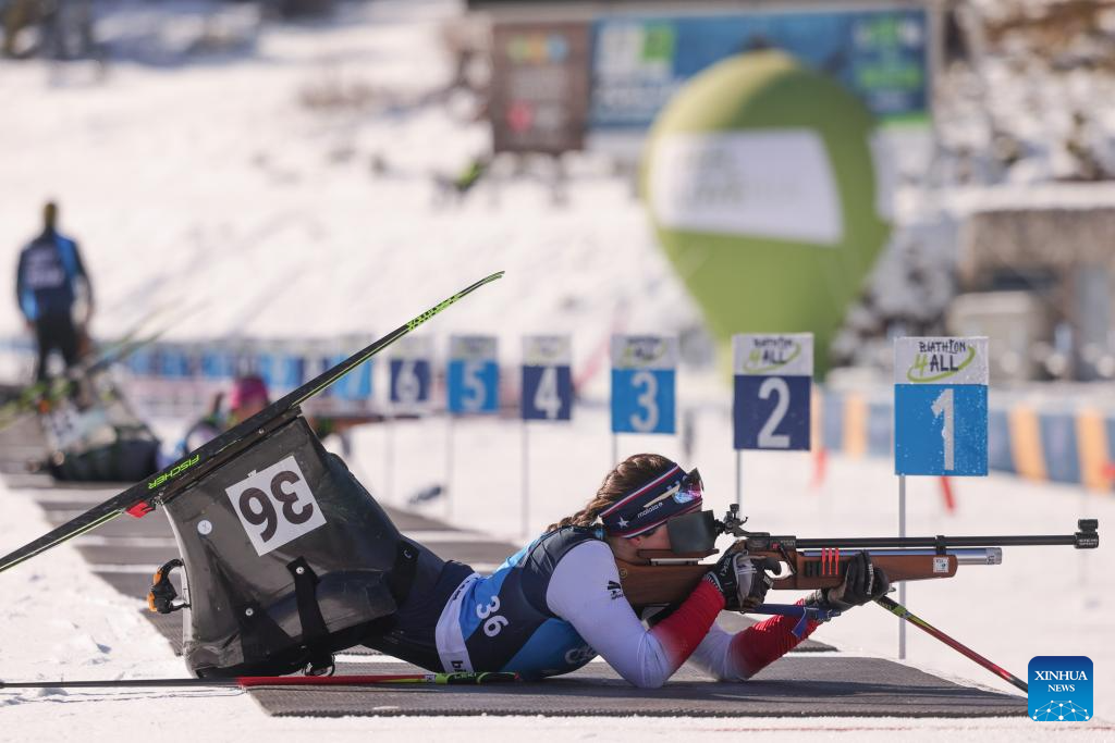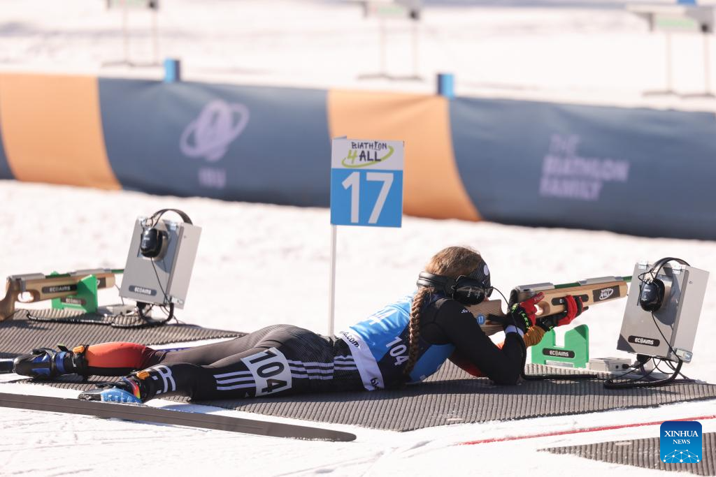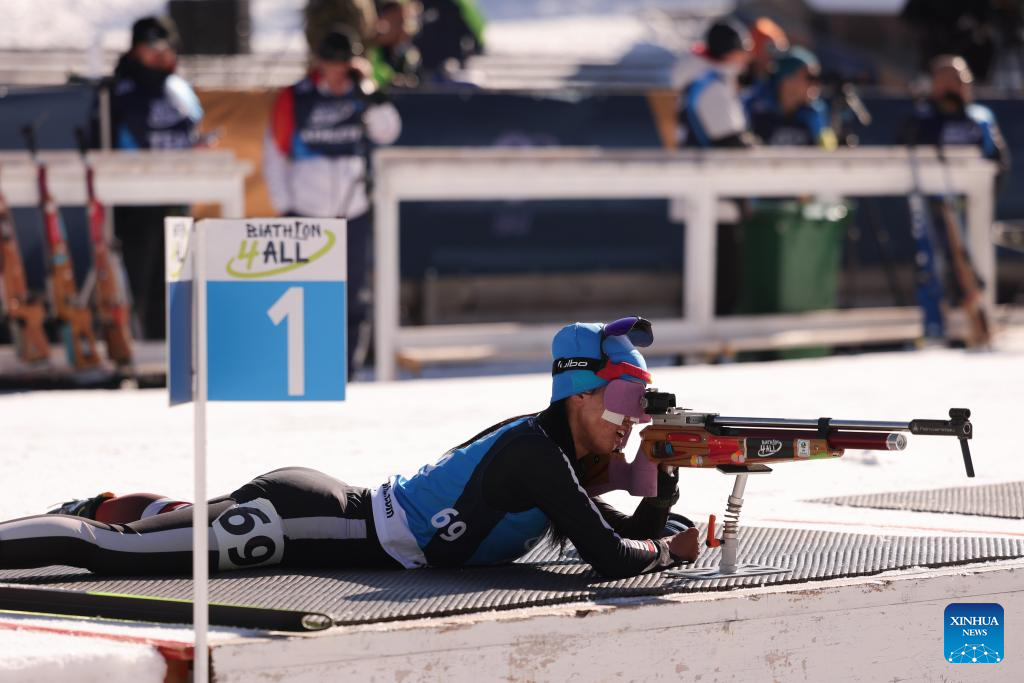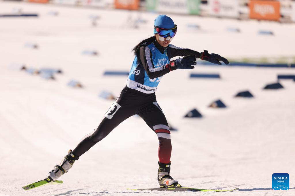 Zhao Zhiqing of China competes in the women's 7.5km sprint standing final during the IBU Para Biathlon World Championships in Pokljuka, Slovenia, Feb. 6, 2025. (Photo by Zeljko Stevanic/Xinhua)