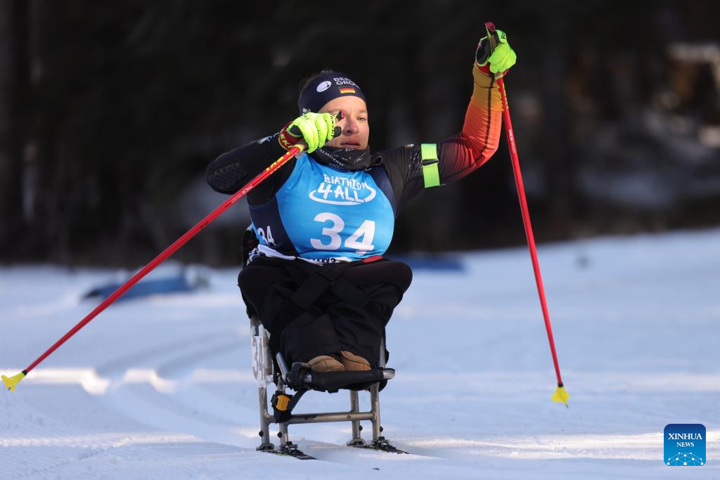 Anja Wicker of Germany competes in the women's 7.5km sprint sitting final during the IBU Para Biathlon World Championships in Pokljuka, Slovenia, Feb. 6, 2025. (Photo by Zeljko Stevanic/Xinhua)