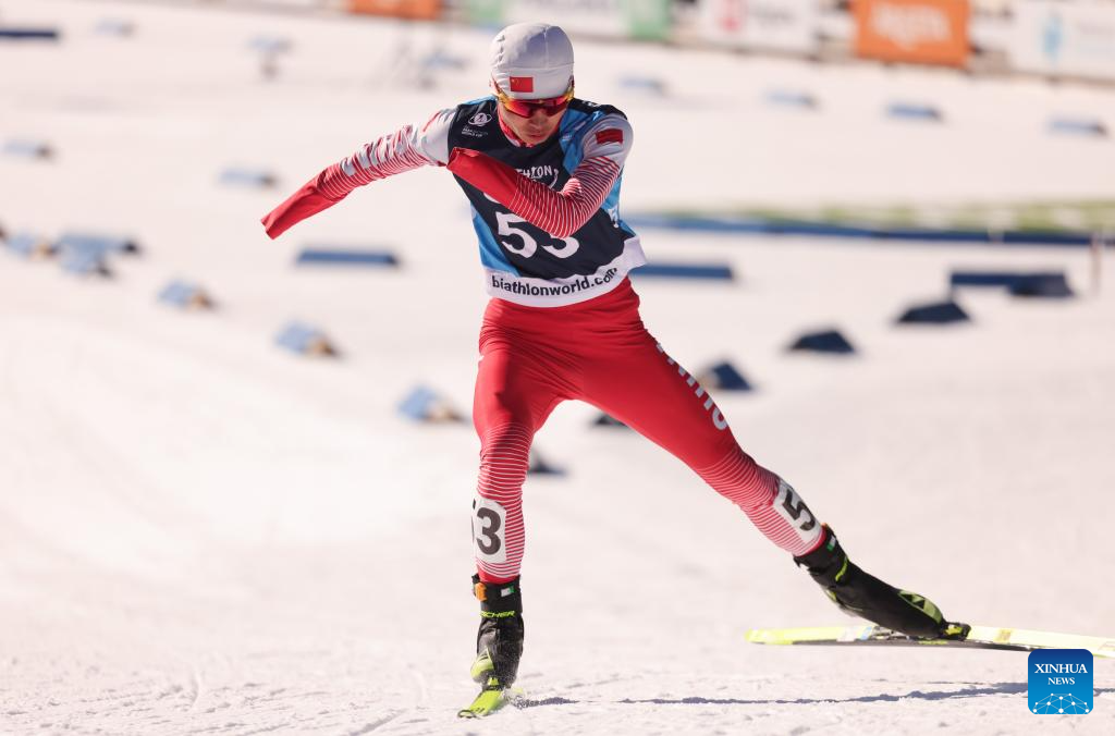 Liu Xiaobin of China competes in the men's 7.5km sprint standing final during the IBU Para Biathlon World Championships in Pokljuka, Slovenia, Feb. 6, 2025. (Photo by Zeljko Stevanic/Xinhua)