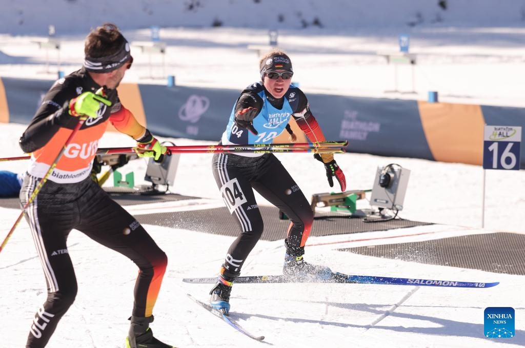 Leonie Maria Walter (R) of Germany competes in the women's 7.5km sprint visual impairment final during the IBU Para Biathlon World Championships in Pokljuka, Slovenia, Feb. 6, 2025. (Photo by Zeljko Stevanic/Xinhua)