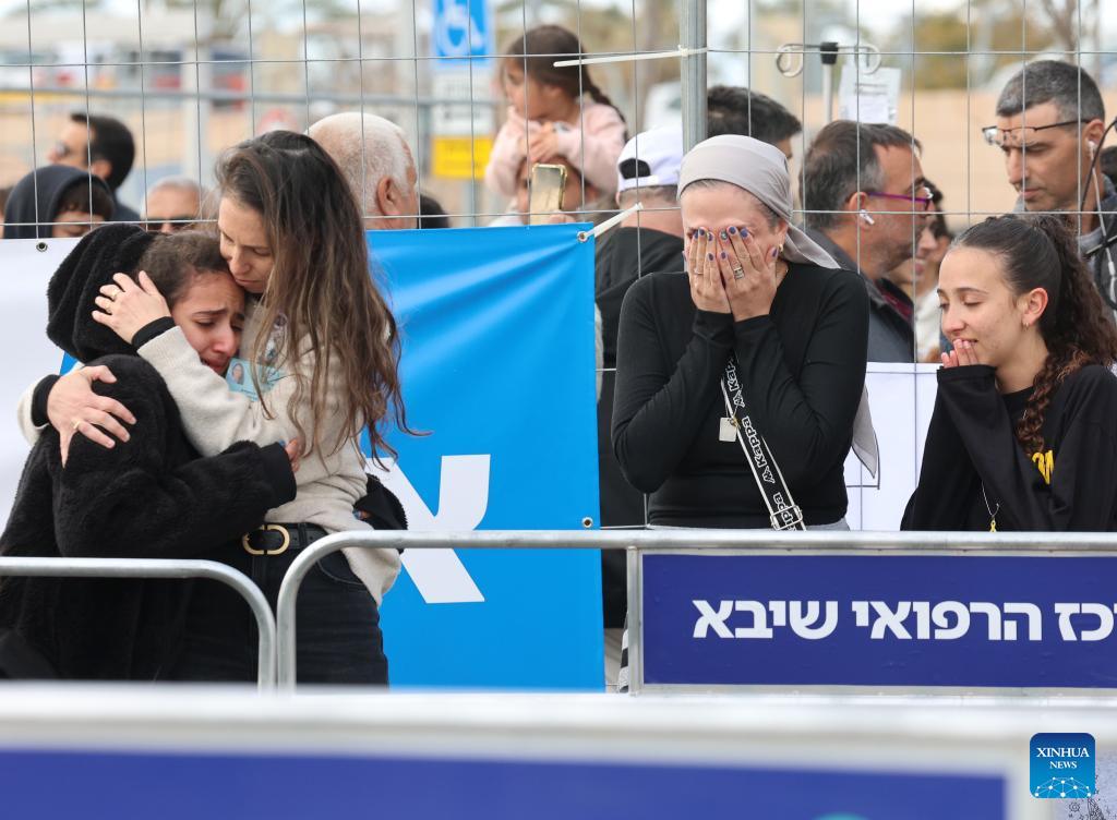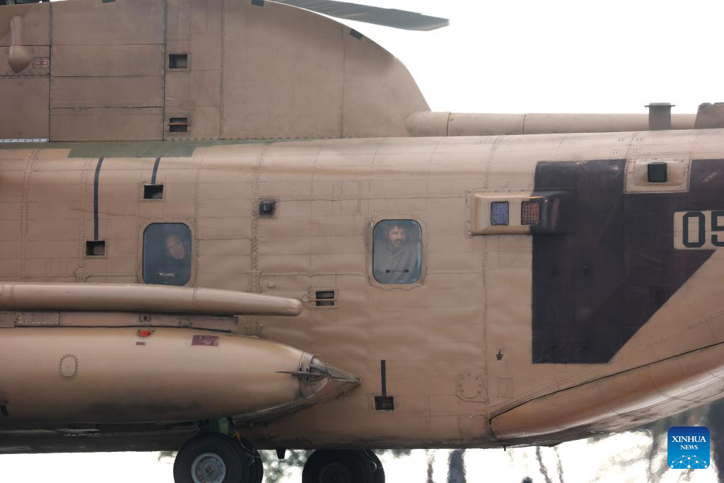 JERUSALEM/GAZA, Feb. 8 (Xinhua) -- Three Israeli hostages previously held by Hamas were transferred on Saturday from central Gaza to the Israel Defense Forces (IDF) and the Israel Security Agency and crossed the border into Israel, the IDF said in a statement.