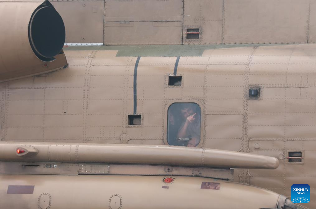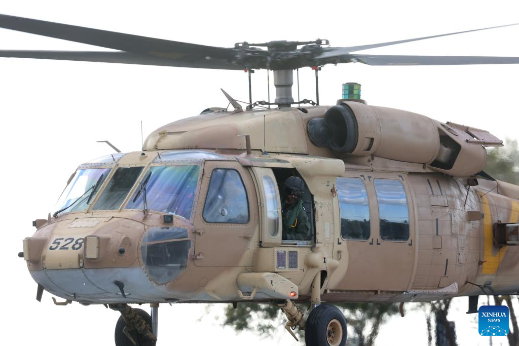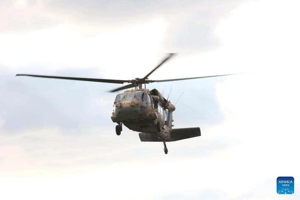 A helicopter carrying a released hostage arrives at a medical center in Ramat Gan, Israel, on Feb. 8, 2025. Israel and Hamas on Saturday completed the fifth prisoner-for-hostage swap under the first phase of the ongoing Gaza ceasefire agreement, according to Israeli and Palestinian sources.