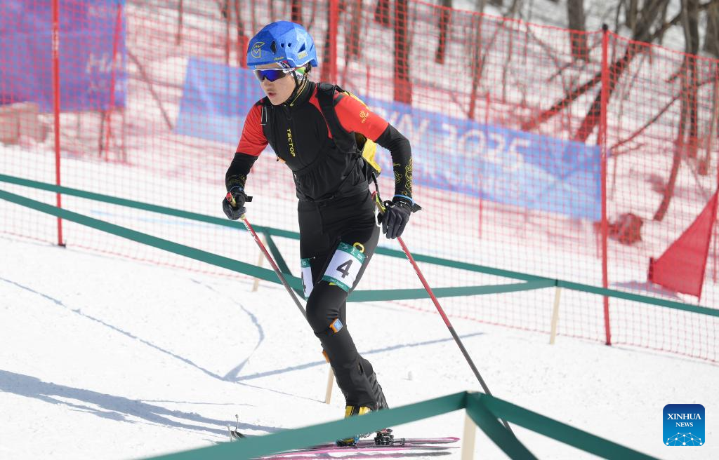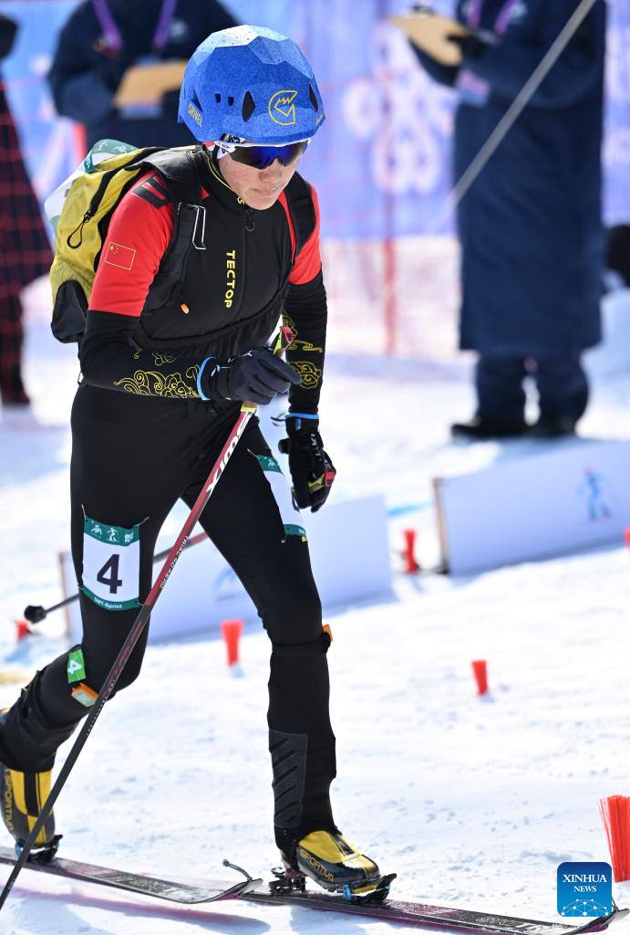 Yu Jingxuan of China competes during the Ski Mountaineering women's sprint qualification match at the 9th Asian Winter Games in Yabuli, northeast China's Heilongjiang Province, Feb. 9, 2025. (Xinhua/Yang Guanyu)