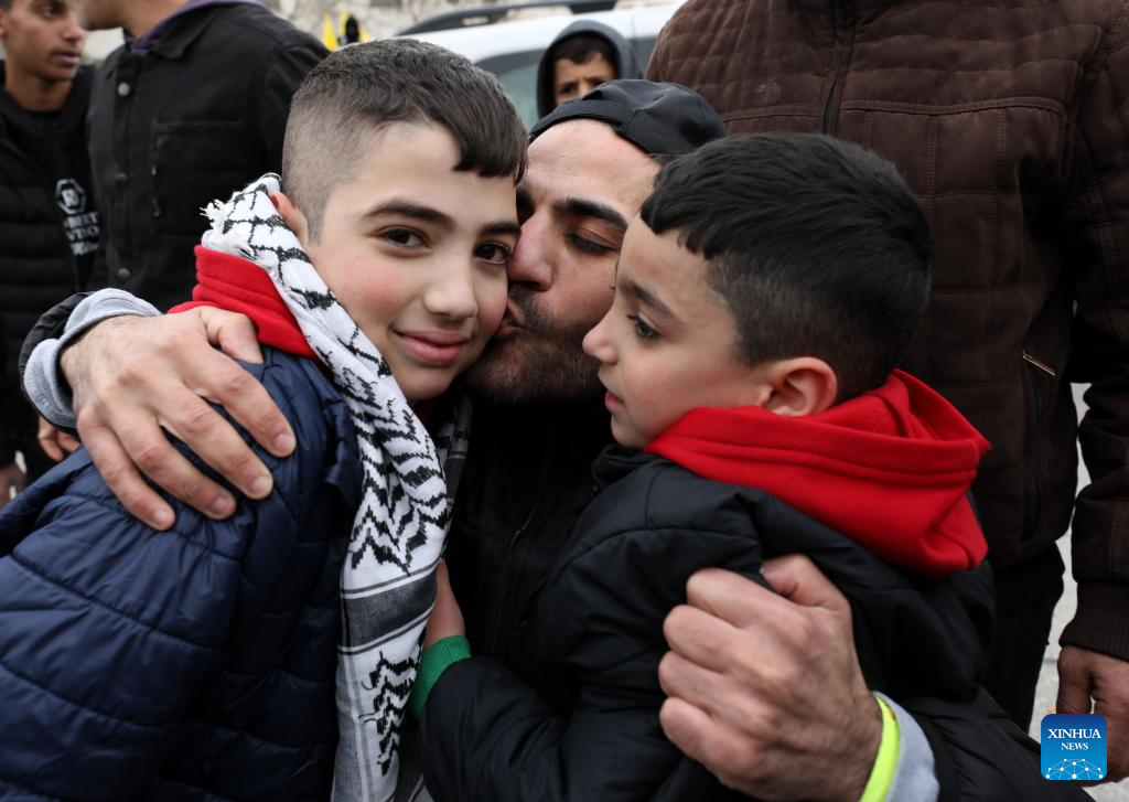 Of the freed prisoners, 42 were from the West Bank, three from Jerusalem, and 27 from the Gaza Strip, all serving life sentences or lengthy terms. Additionally, 111 prisoners were arrested in the Gaza Strip after Hamas' surprise attack on southern Israel on Oct. 7, 2023, the Commission of Detainees' Affairs said in a press statement. (Photo by Ayman Nobani/Xinhua)