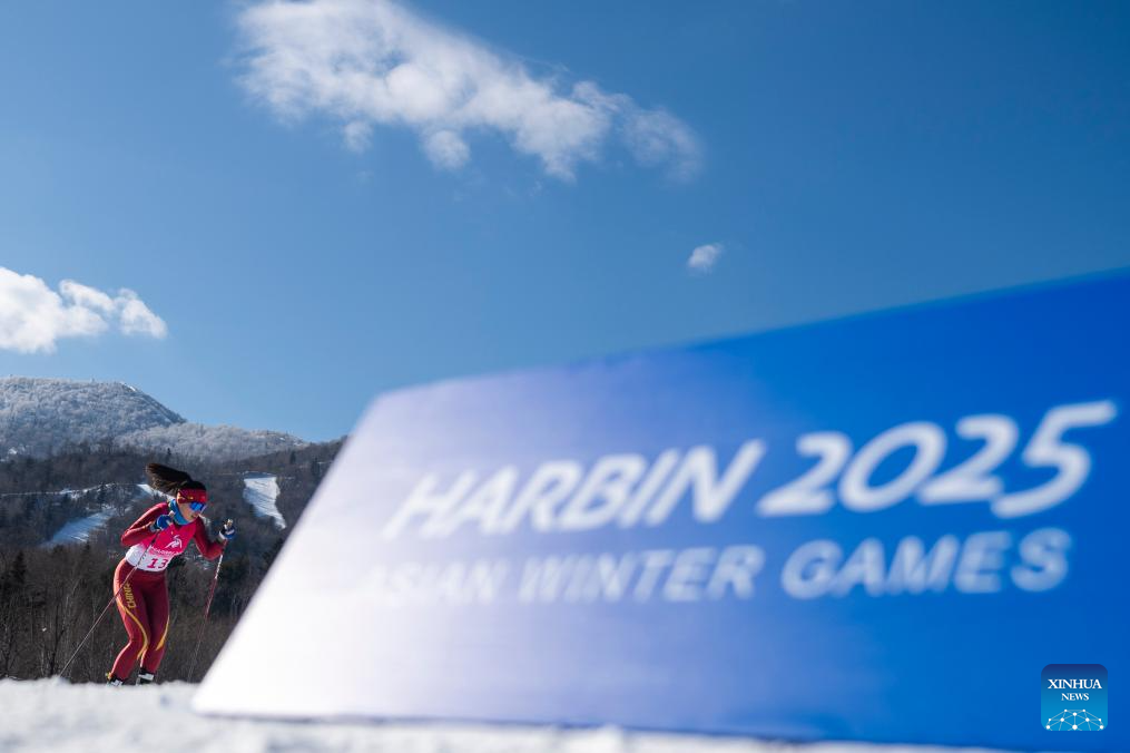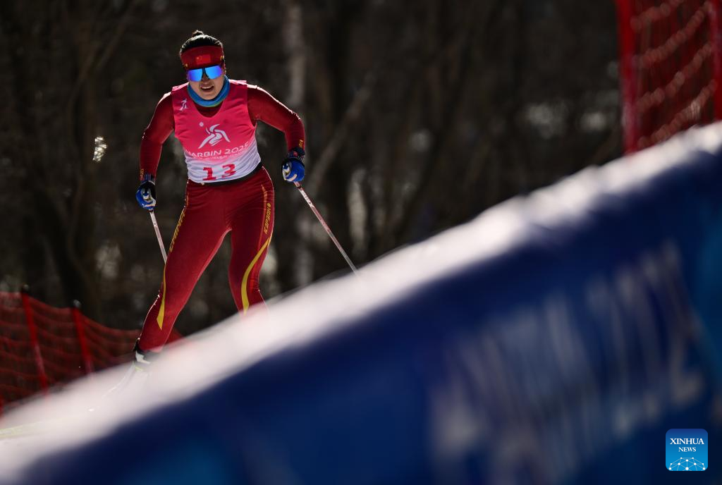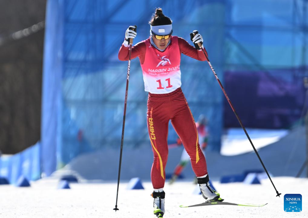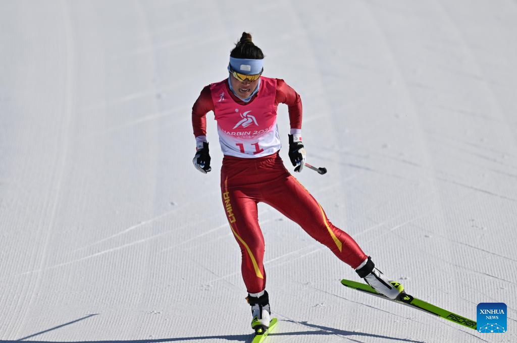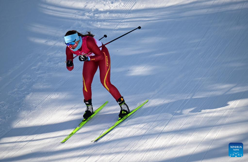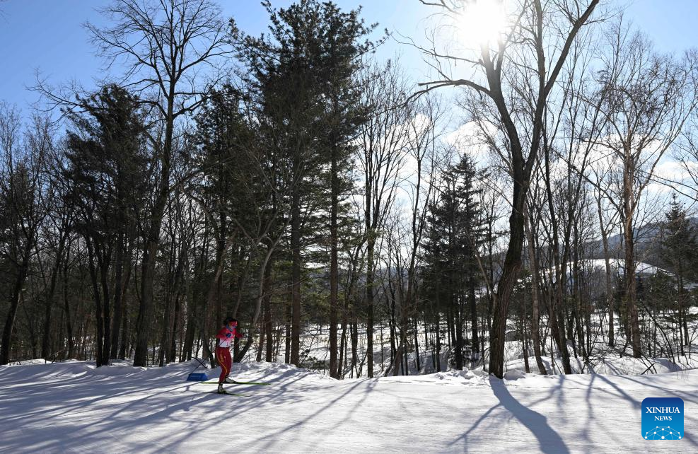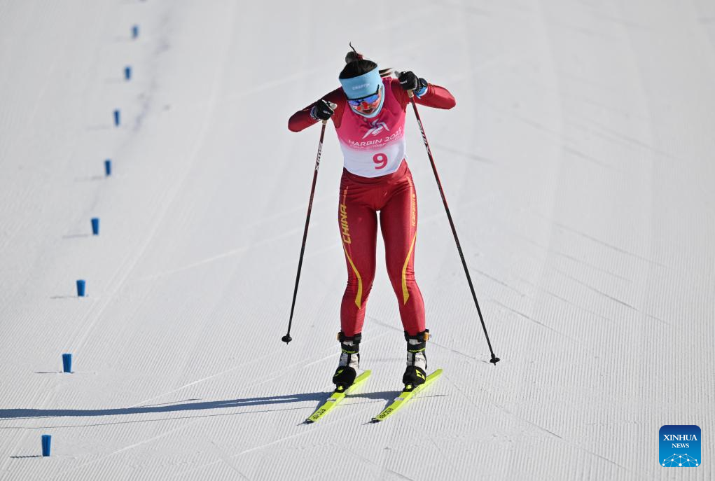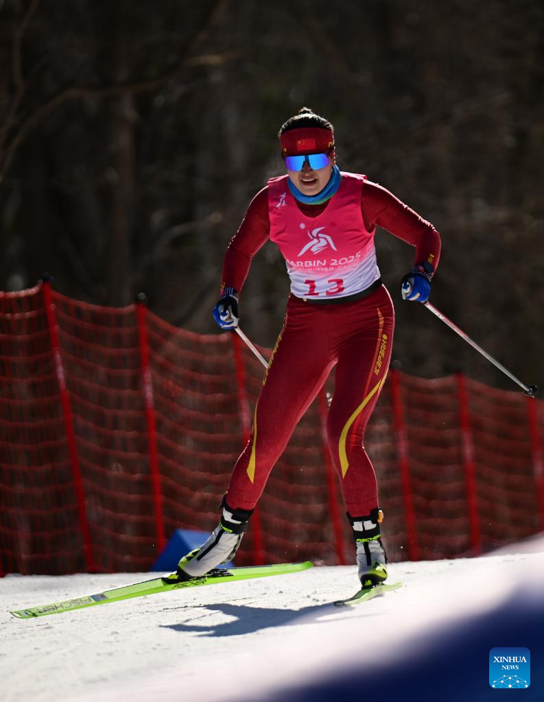 Bayani Jialin of China competes during the Cross-Country Skiing women's 5km free match at the 9th Asian Winter Games in Yabuli, northeast China's Heilongjiang Province, Feb. 9, 2025. (Xinhua/Zhang Long)