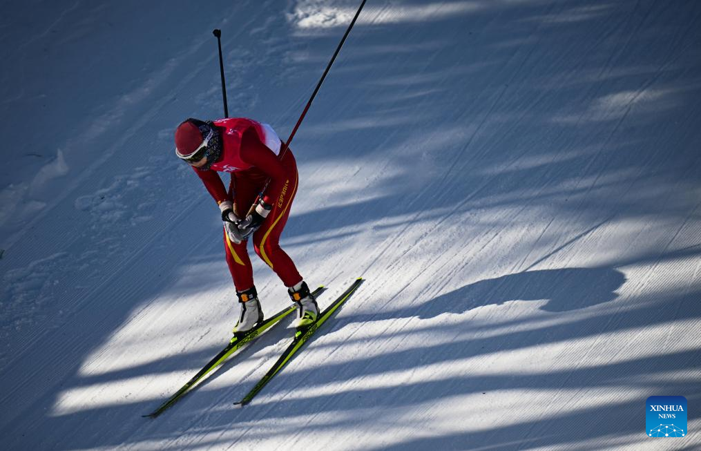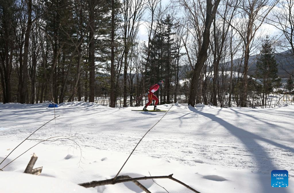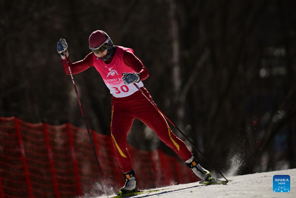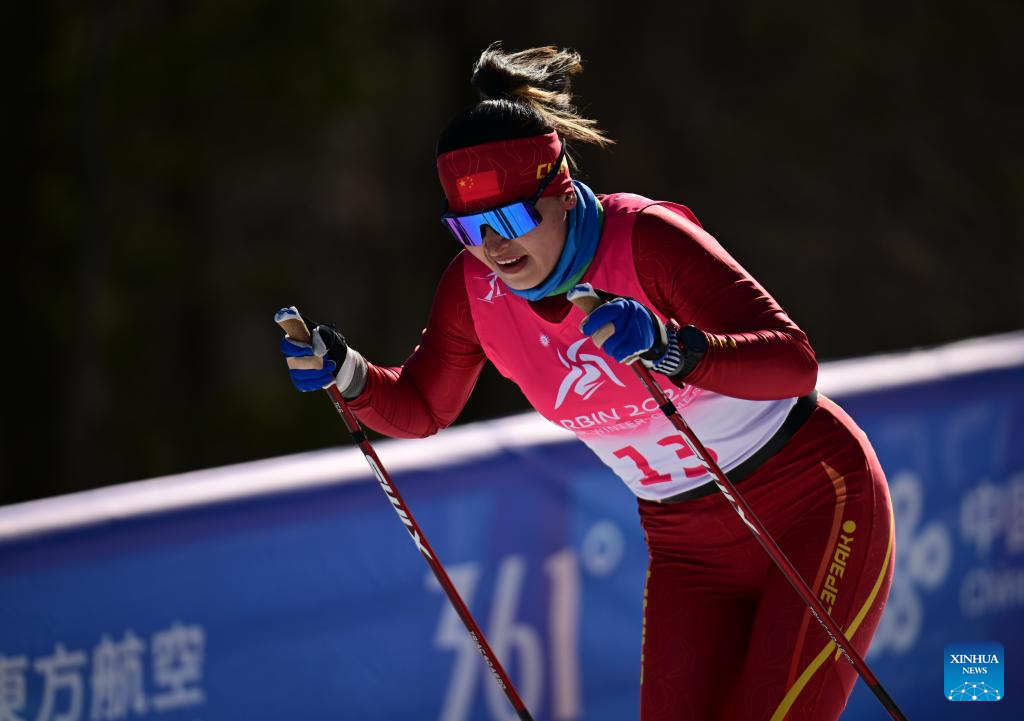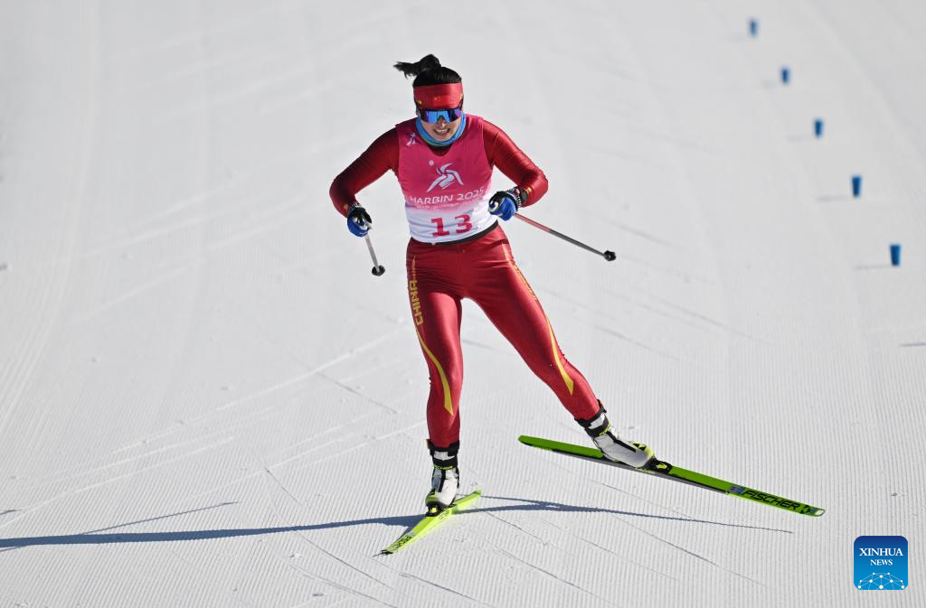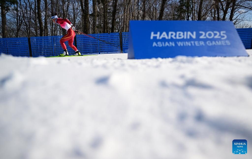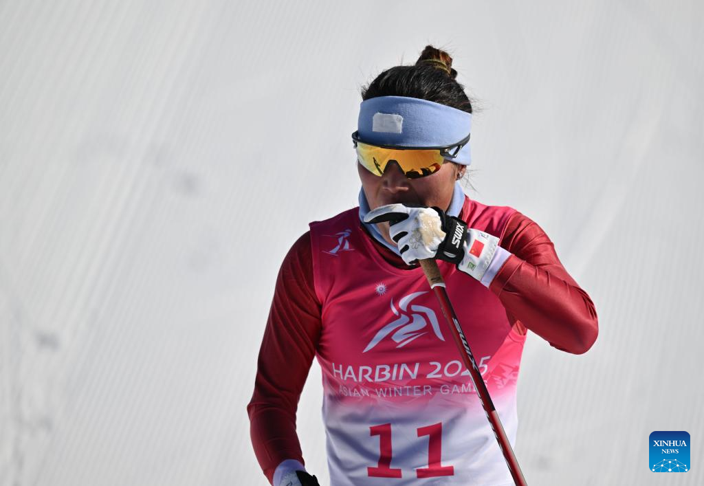 Bayani Jialin of China competes during the Cross-Country Skiing women's 5km free match at the 9th Asian Winter Games in Yabuli, northeast China's Heilongjiang Province, Feb. 9, 2025. (Xinhua/Zhang Long)
