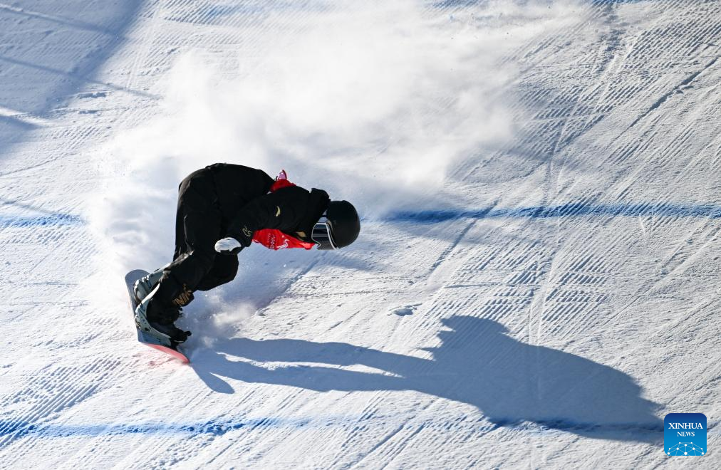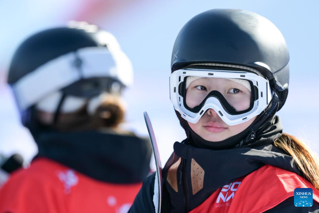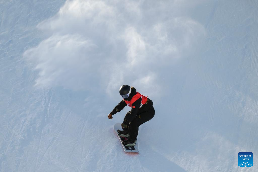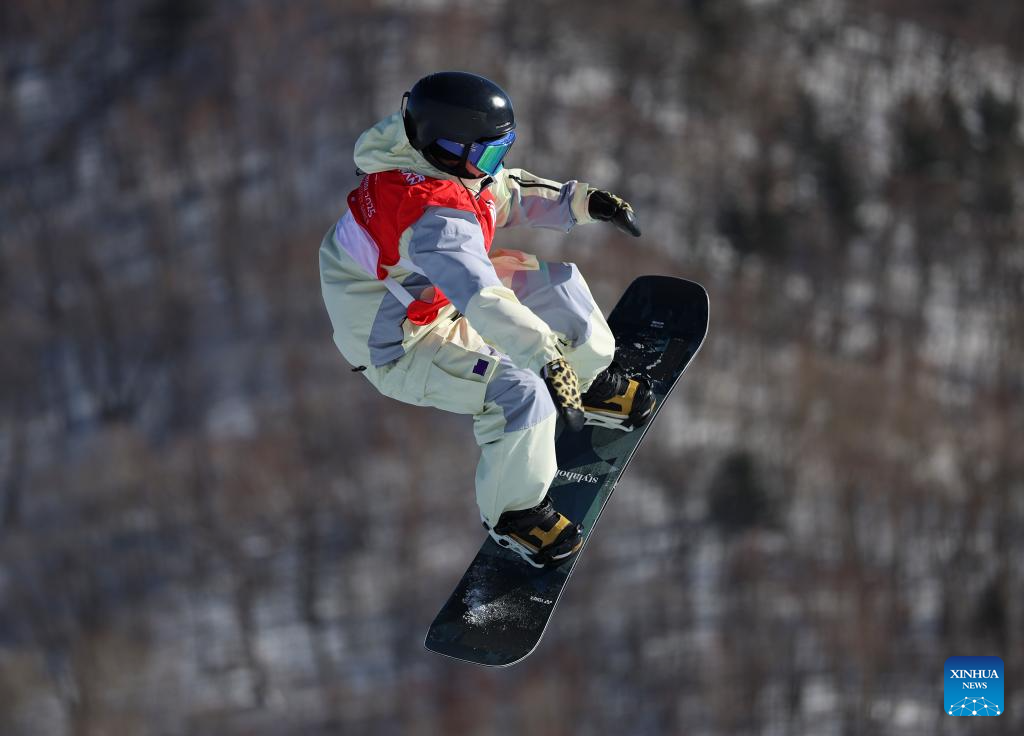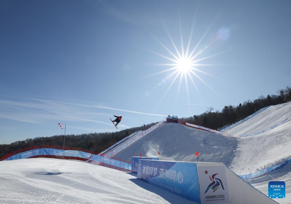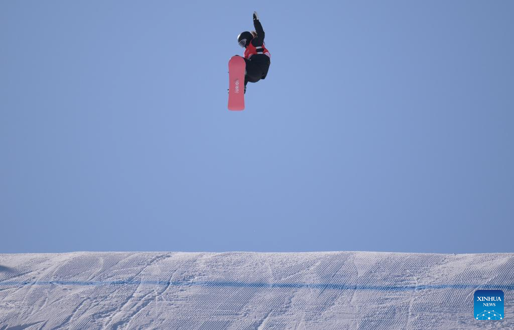 Xiong Shirui of China competes during the women's snowboard big air final match at the 9th Asian Winter Games in Yabuli, northeast China's Heilongjiang Province, Feb. 10, 2025. (Xinhua/Mu Yu)