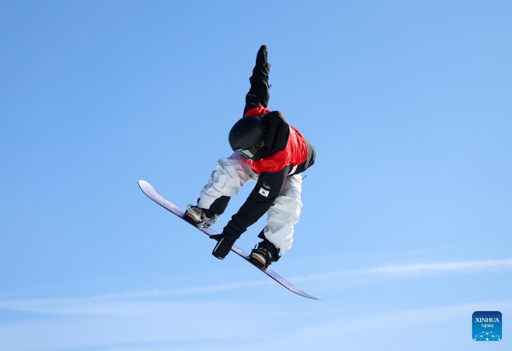 Choi Seowoo of South Korea competes during the women's snowboard big air final match at the 9th Asian Winter Games in Yabuli, northeast China's Heilongjiang Province, Feb. 10, 2025. (Xinhua/Yang Qing)