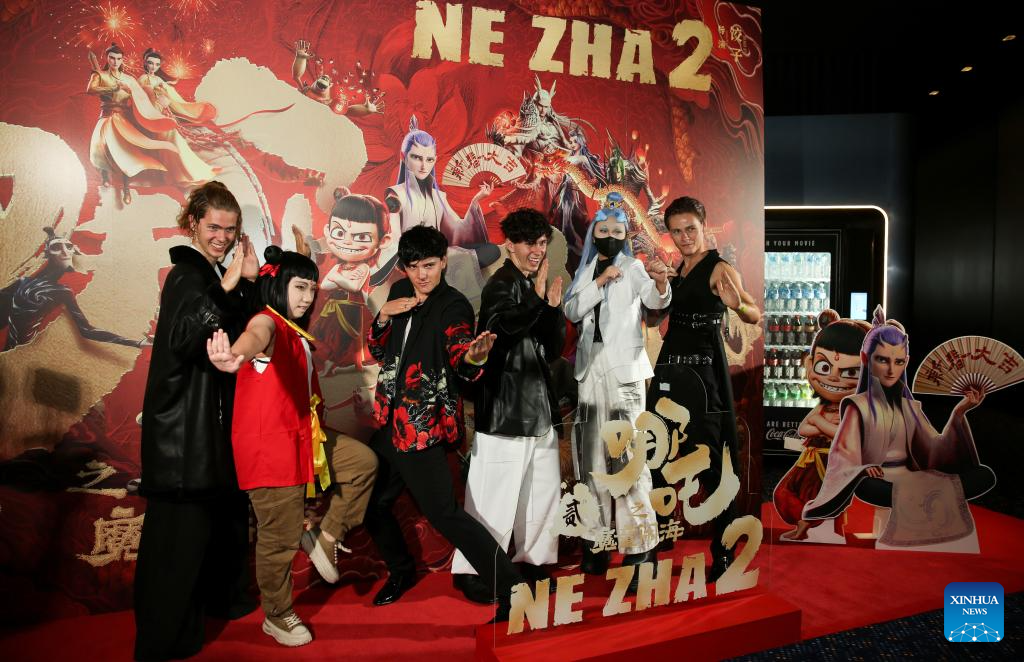 Audience line up to attend the premiere of the Chinese fantasy feature "Ne Zha 2" at IMAX Sydney in Sydney, Australia, Feb. 11, 2025. (Xinhua/Ma Ping)