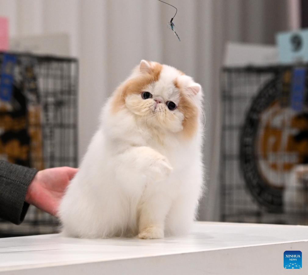 A cat is pictured during the Kuwait Cats Show 2025 in Hawalli Governorate, Kuwait, Feb. 15, 2025. Kuwait Cats Show 2025 was held here on Friday and Saturday with the participation of more than 100 cats. (Photo by Asad/Xinhua)