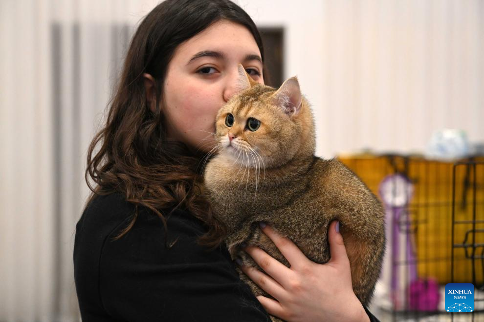 A girl holds her cat during the Kuwait Cats Show 2025 in Hawalli Governorate, Kuwait, Feb. 15, 2025. Kuwait Cats Show 2025 was held here on Friday and Saturday with the participation of more than 100 cats. (Photo by Asad/Xinhua)
