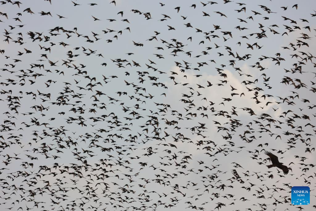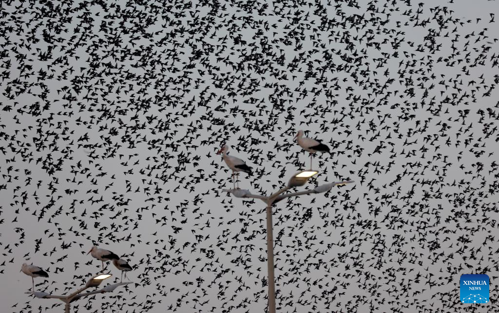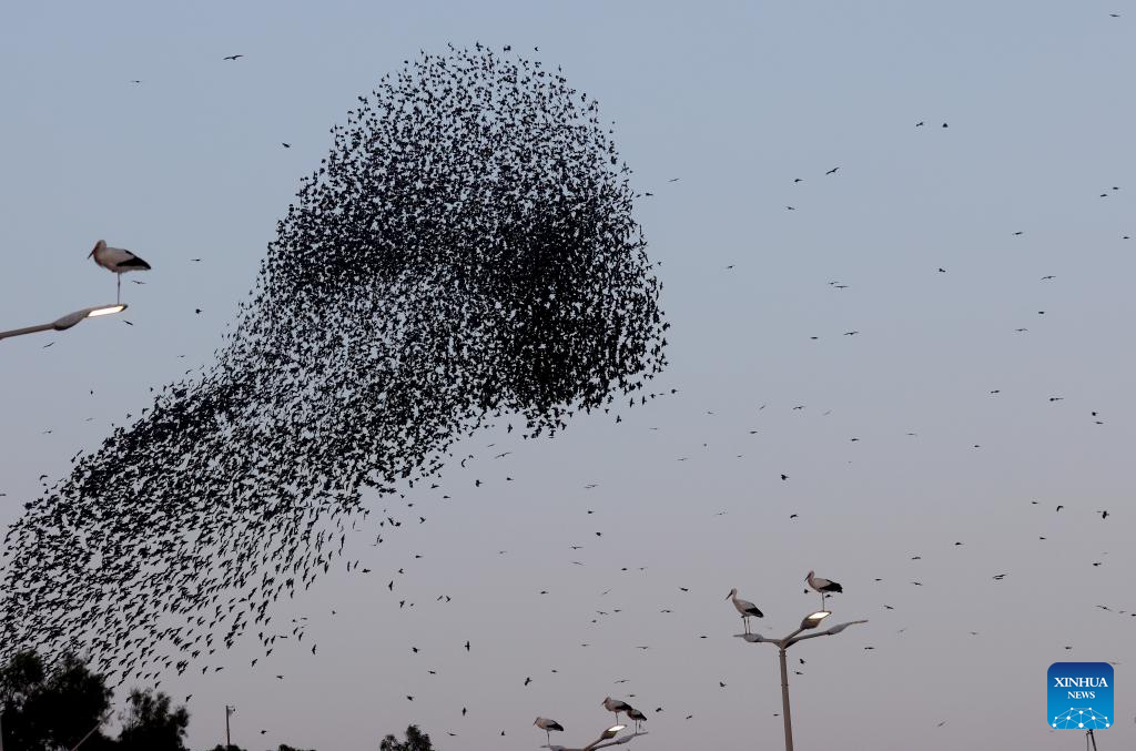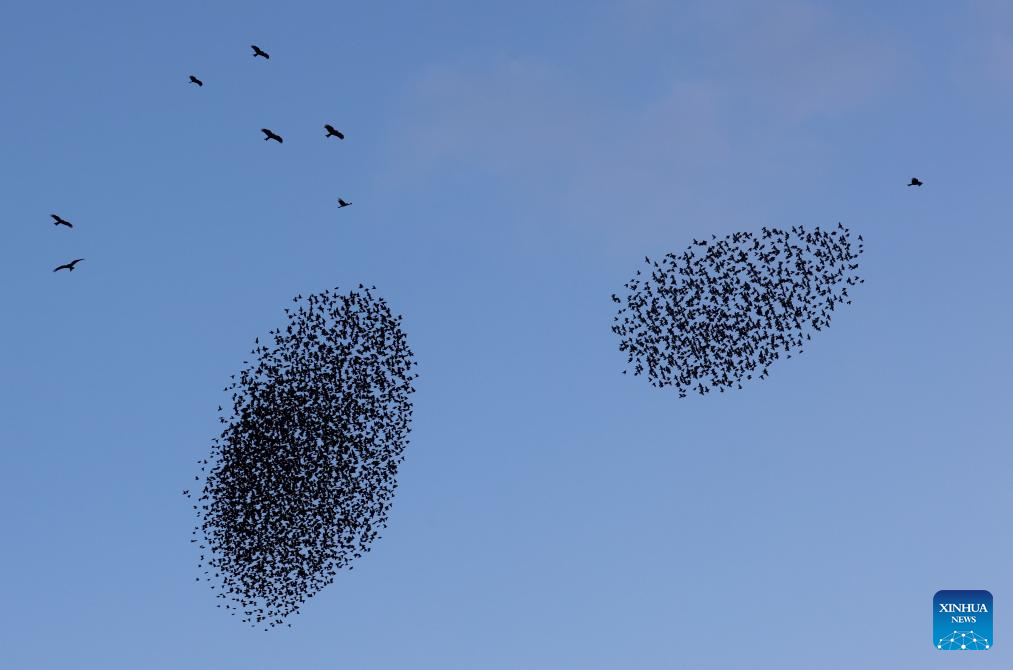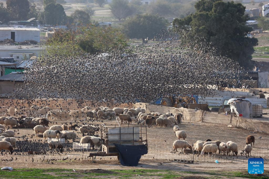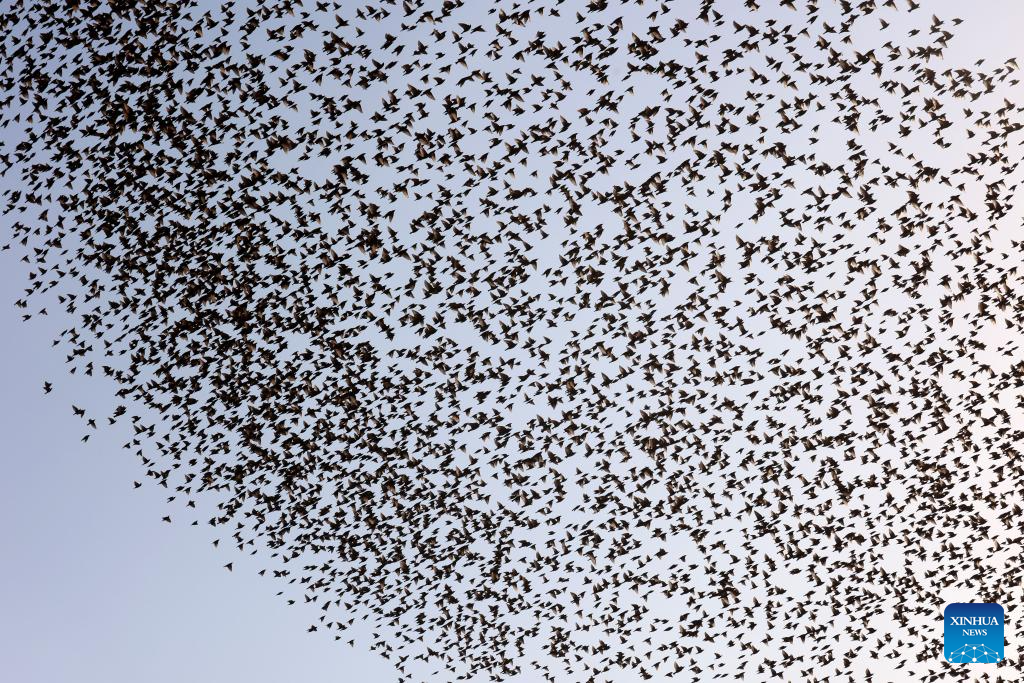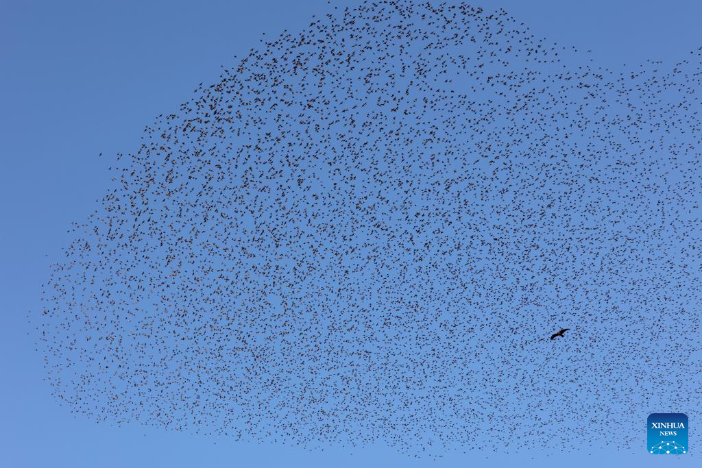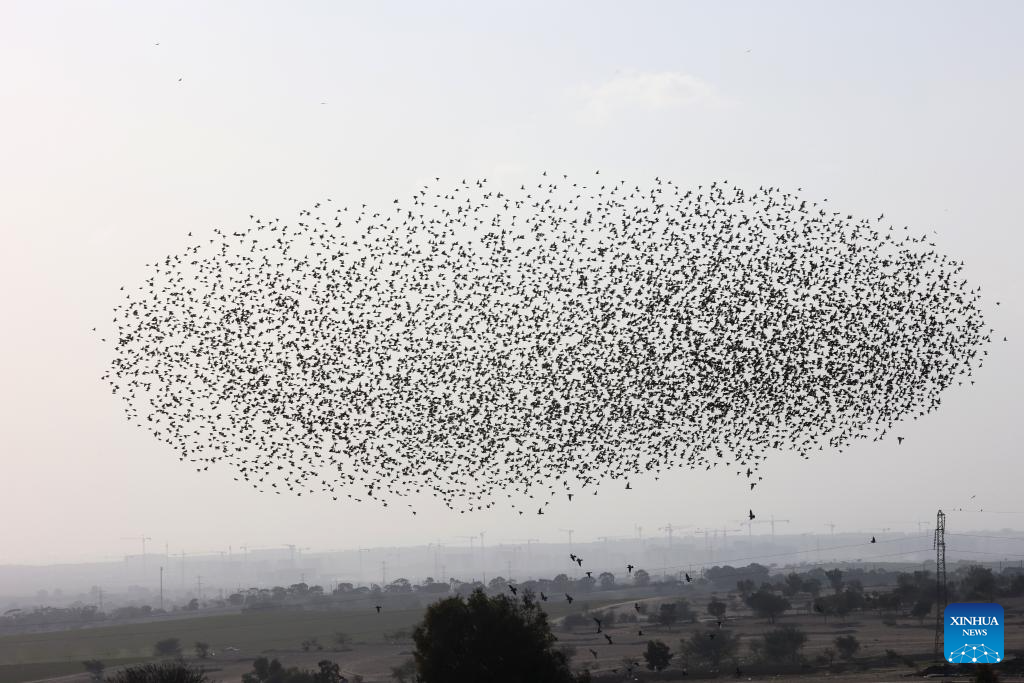 Starlings are seen above the Negev Desert, near the southern Israeli city of Beer Sheva, on Feb. 16, 2025. (Photo by Gil Cohen Magen/Xinhua)