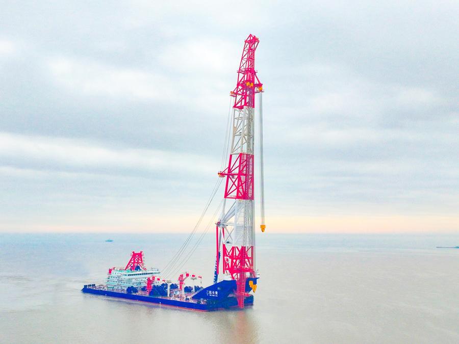 The vessel features the world's highest derrick at the stern, with the largest piling capacity. It will play a role in the construction of large ports, cross-sea bridges, offshore wind power and other projects in the future, said the newspaper.