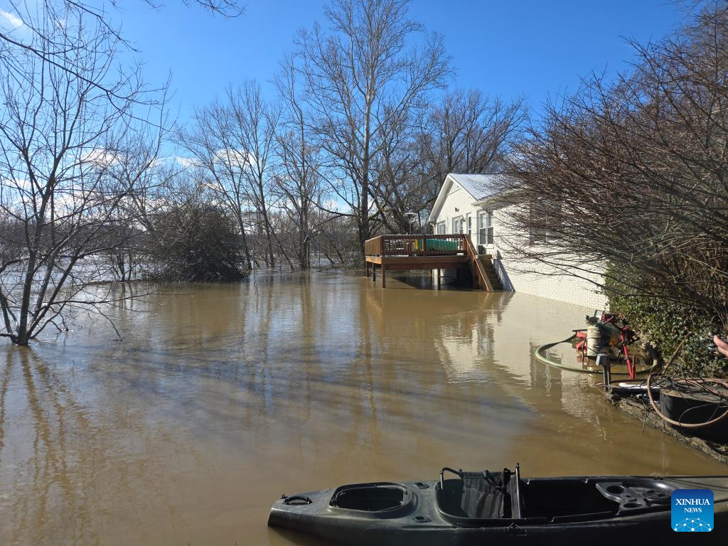Photo taken on Feb. 17, 2025 shows a waterlogged area in Frankfort, Kentucky, the United States. (Photo by Wang Changzheng/Xinhua)