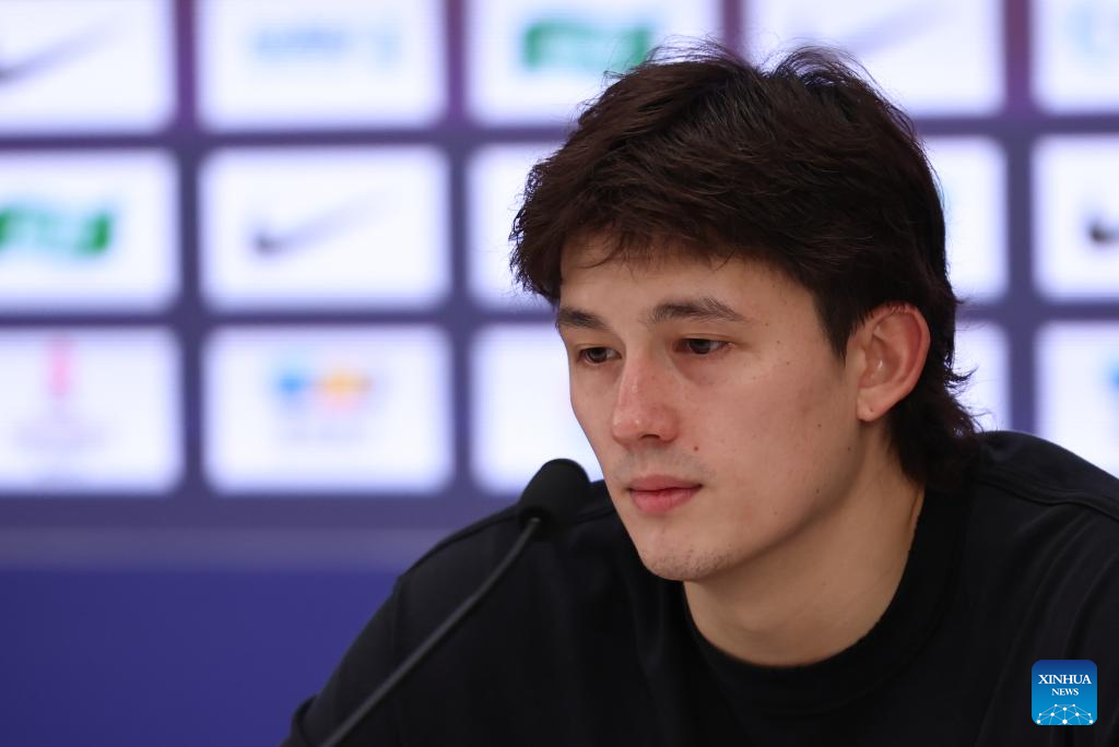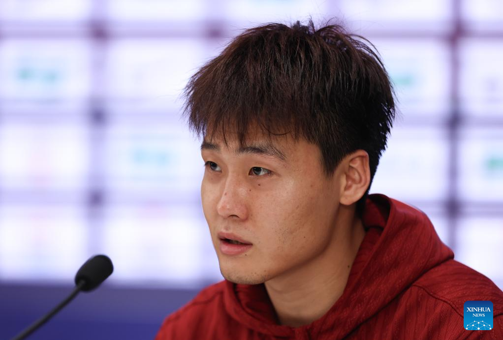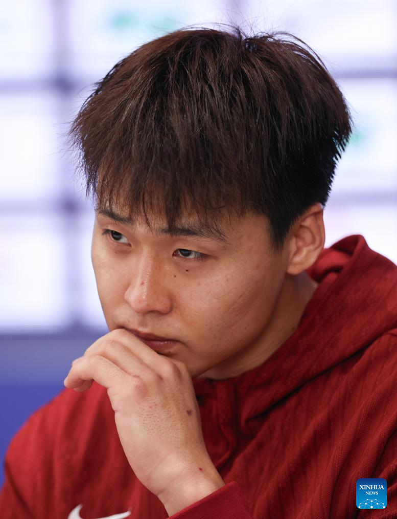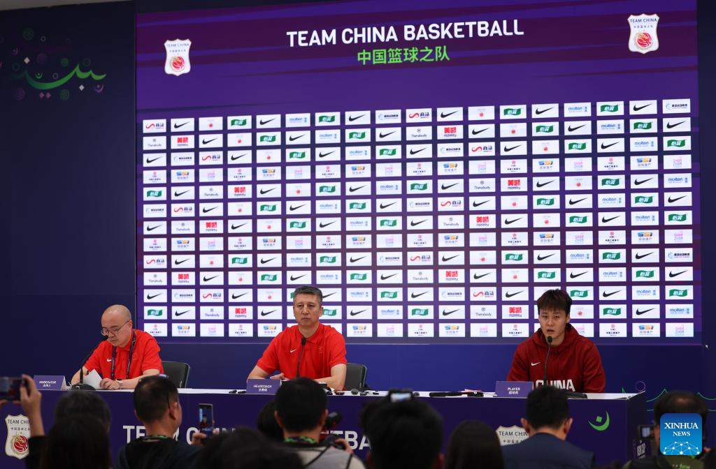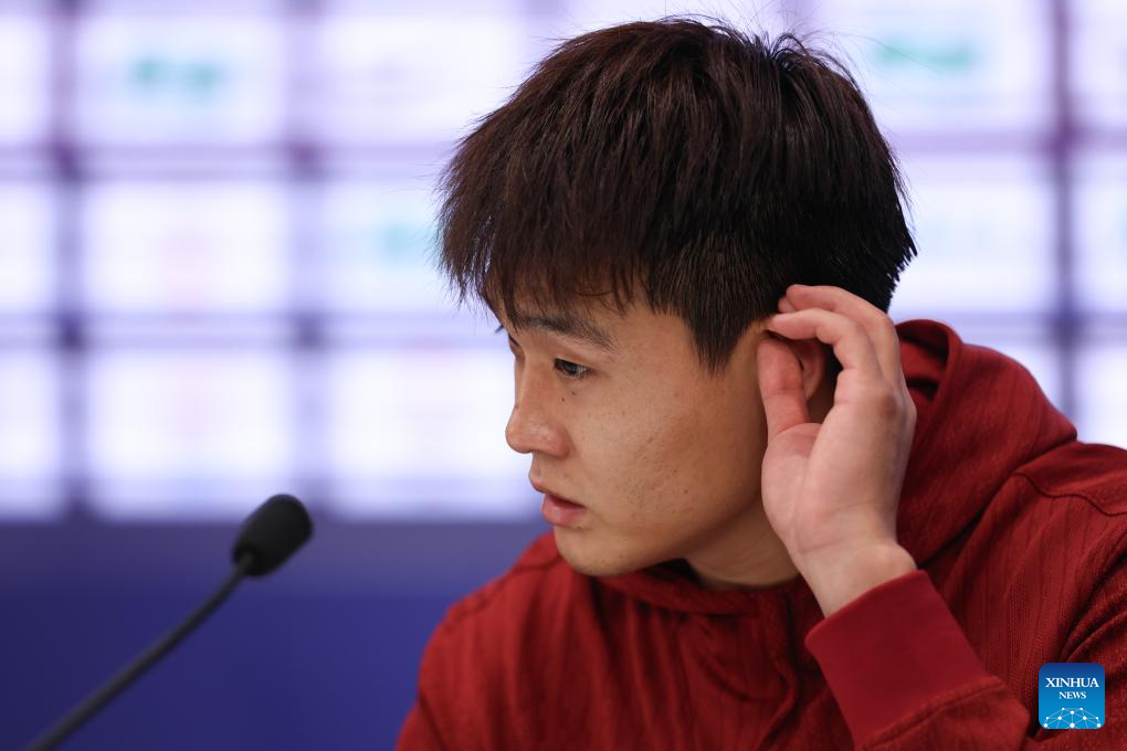 Zhao Rui of China attends the press conference after the FIBA Asia Cup 2025 Qualifiers Group C match between China and Japan in Shenzhen, south China's Guangdong Province, Feb. 20, 2025. (Xinhua/Wang Kaiyan)