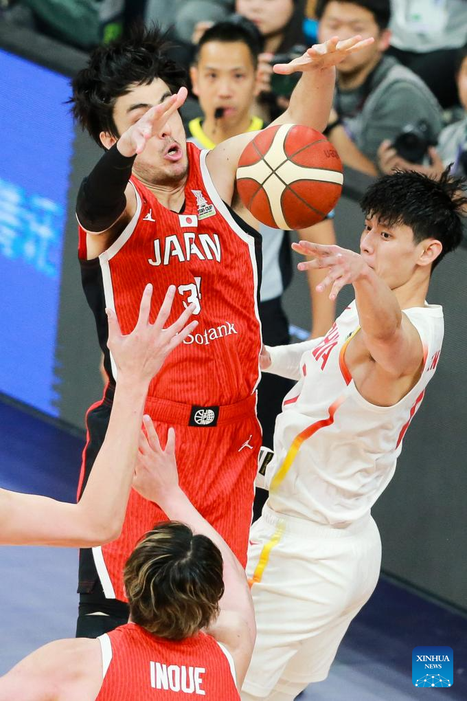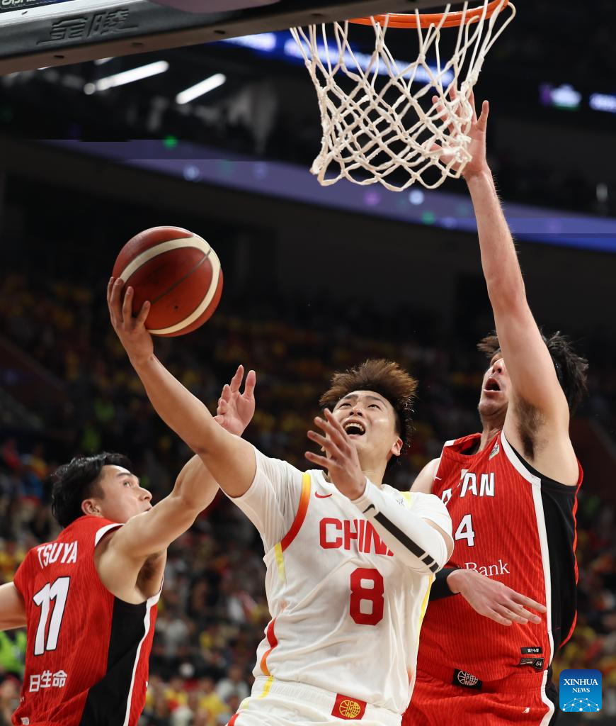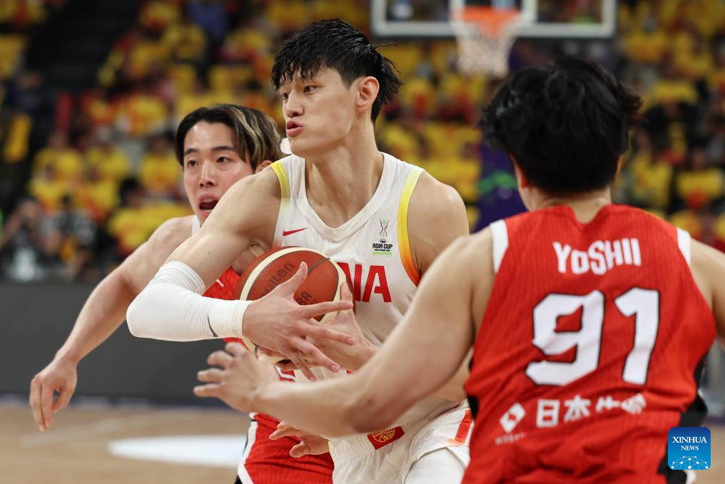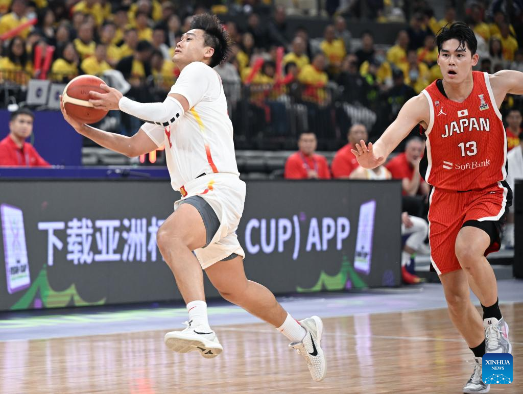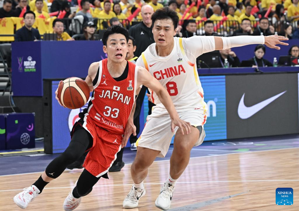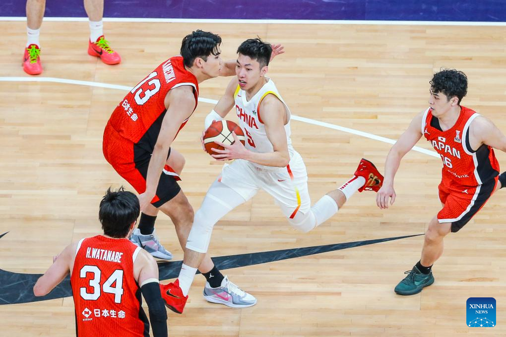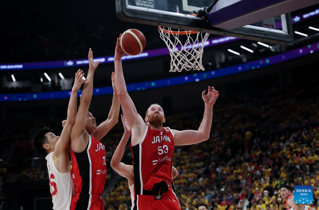SHENZHEN, Feb. 20 (Xinhua) -- The Chinese men's basketball team won 100-58 over Japan in a Group C game of the 2025 FIBA Asia Cup qualifiers on Thursday evening, securing its place in the Asia Cup.