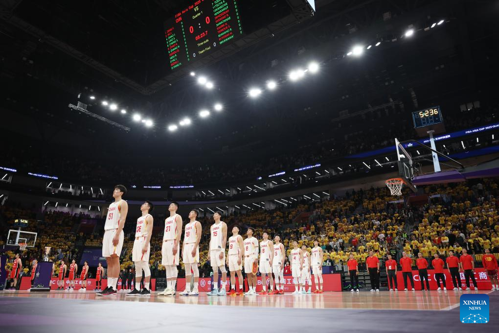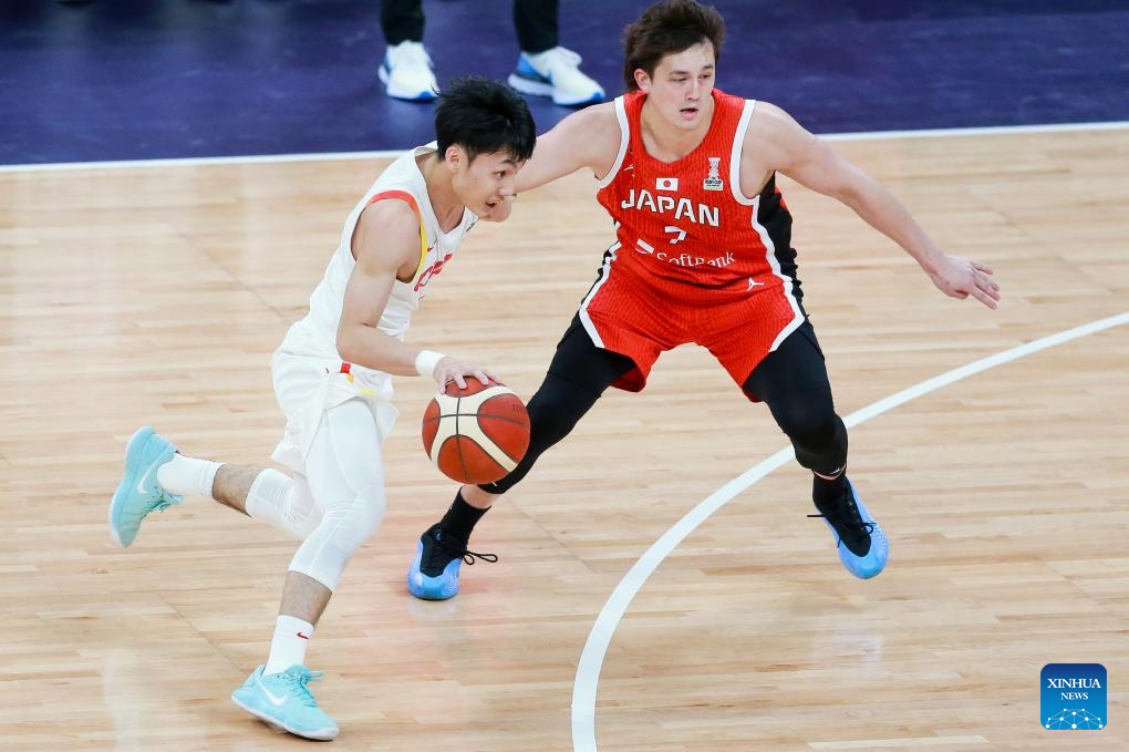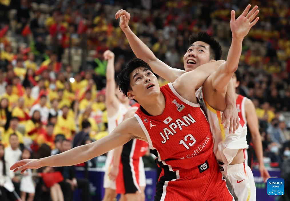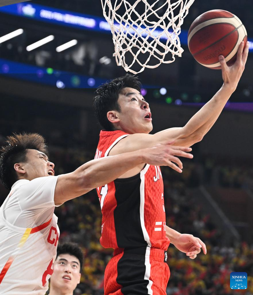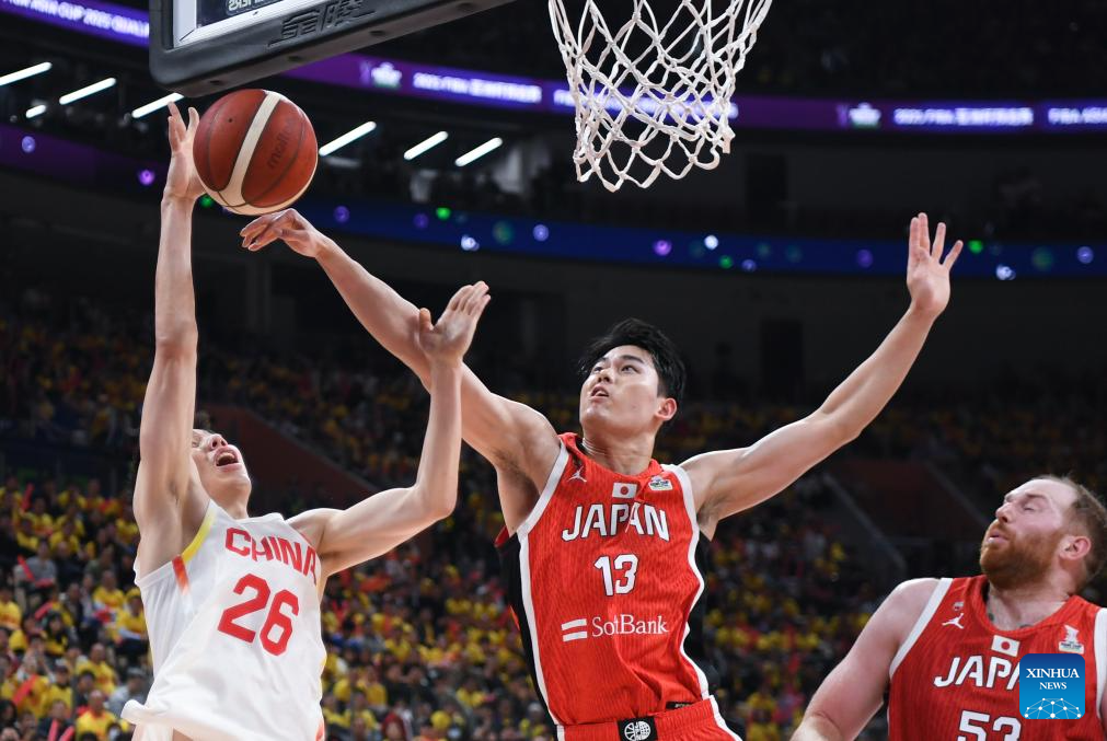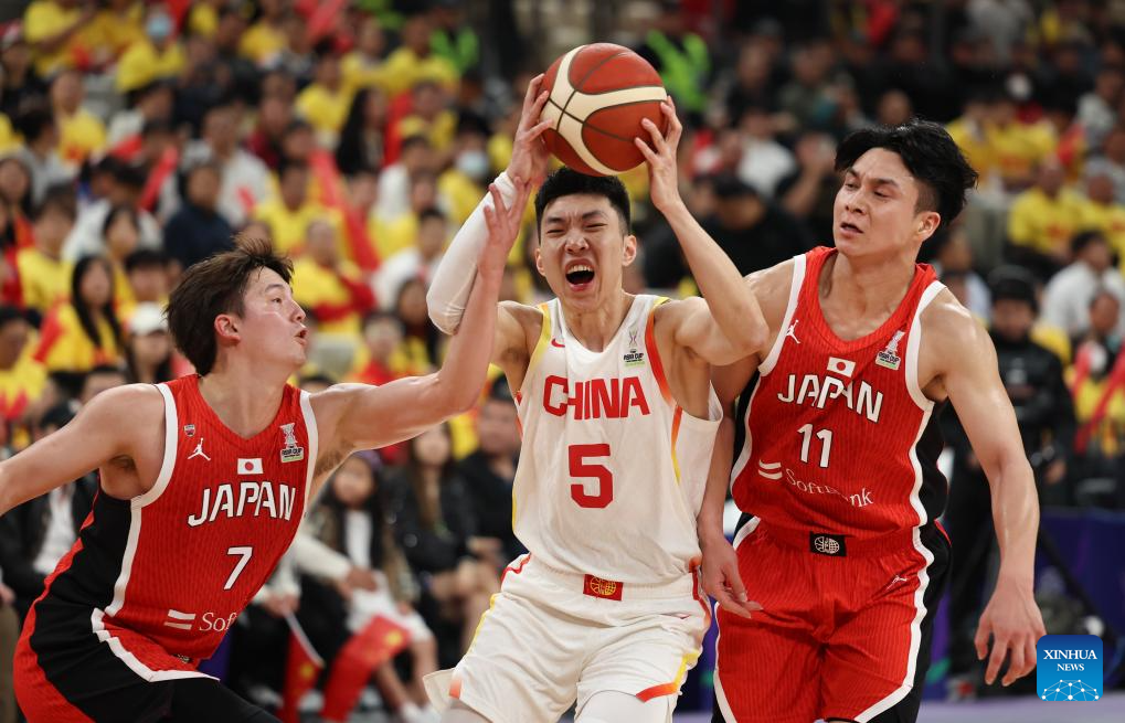 SHENZHEN, Feb. 20 (Xinhua) -- The Chinese men's basketball team won 100-58 over Japan in a Group C game of the 2025 FIBA Asia Cup qualifiers on Thursday evening, securing its place in the Asia Cup.