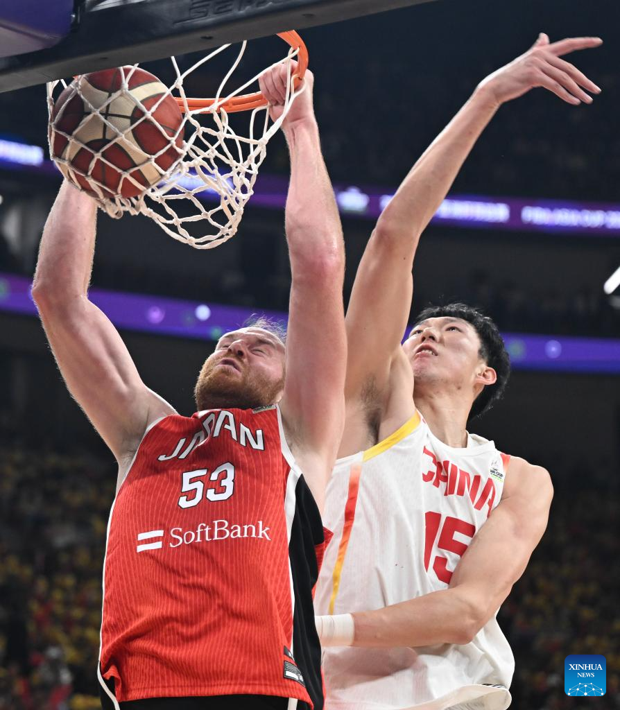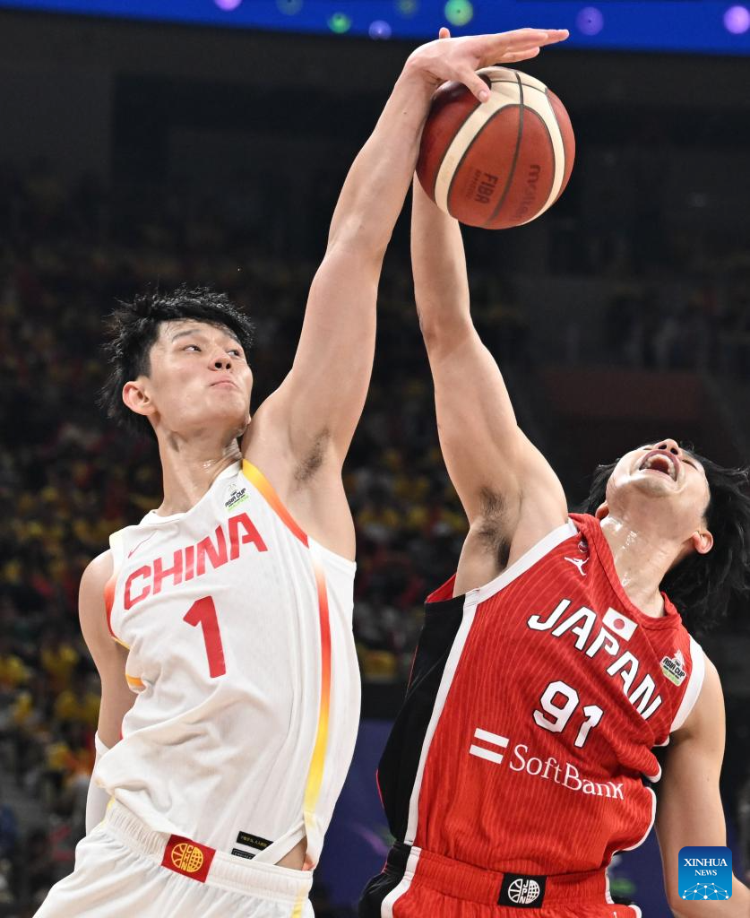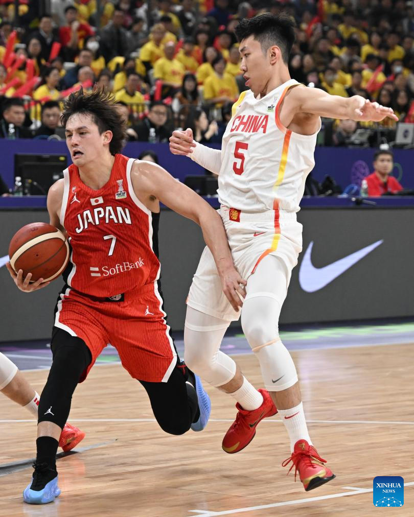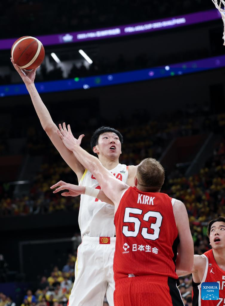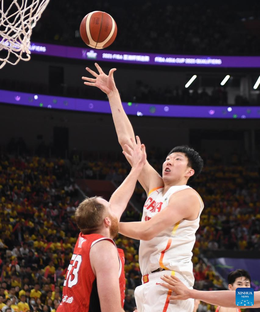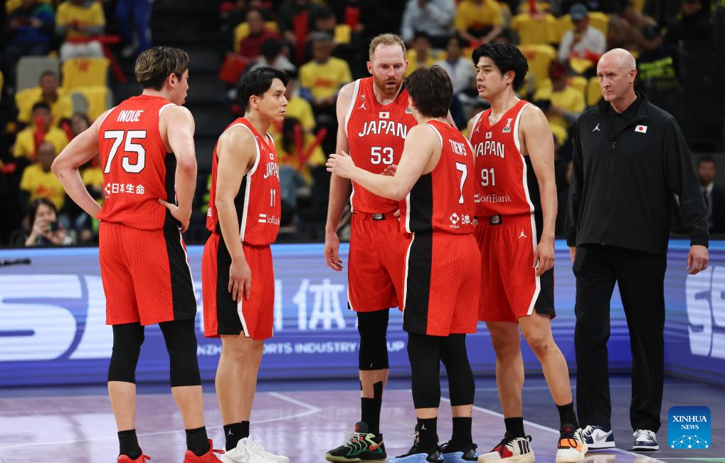 SHENZHEN, Feb. 20 (Xinhua) -- The Chinese men's basketball team won 100-58 over Japan in a Group C game of the 2025 FIBA Asia Cup qualifiers on Thursday evening, securing its place in the Asia Cup.