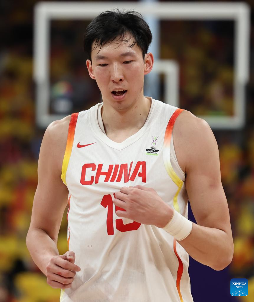 Zhou Qi of China reacts during the FIBA Asia Cup 2025 Qualifiers Group C match between China and Japan in Shenzhen, south China's Guangdong Province, Feb. 20, 2025. (Xinhua/Wang Kaiyan)