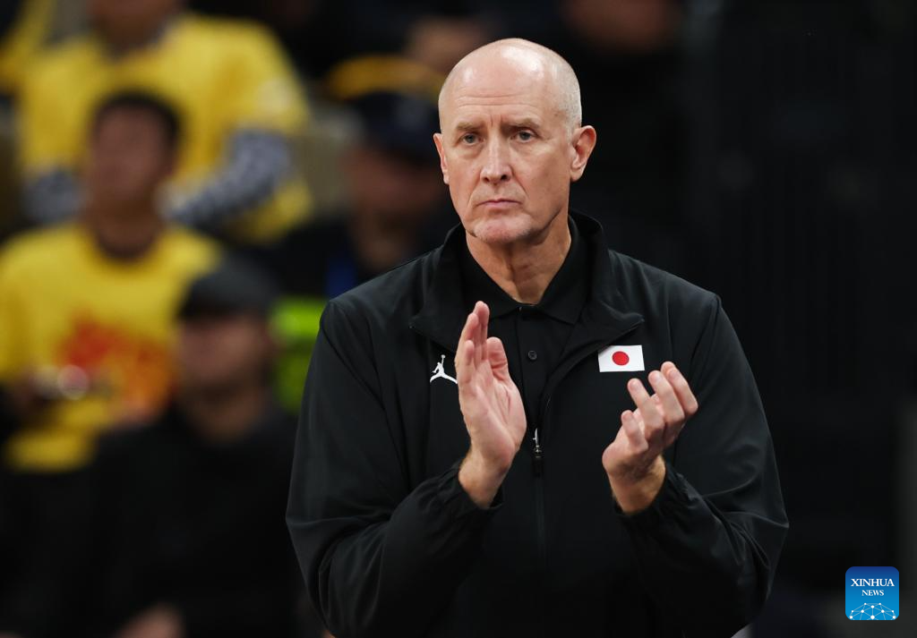Japan's head coach Tom Hovasse reacts during the FIBA Asia Cup 2025 Qualifiers Group C match between China and Japan in Shenzhen, south China's Guangdong Province, Feb. 20, 2025. (Xinhua/Mao Siqian)