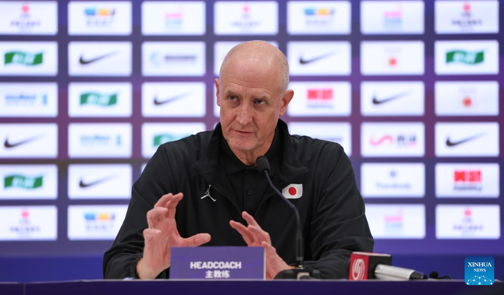Japan's head coach Tom Hovasse attends the press conference after the FIBA Asia Cup 2025 Qualifiers Group C match between China and Japan in Shenzhen, south China's Guangdong Province, Feb. 20, 2025. (Xinhua/Wang Kaiyan)