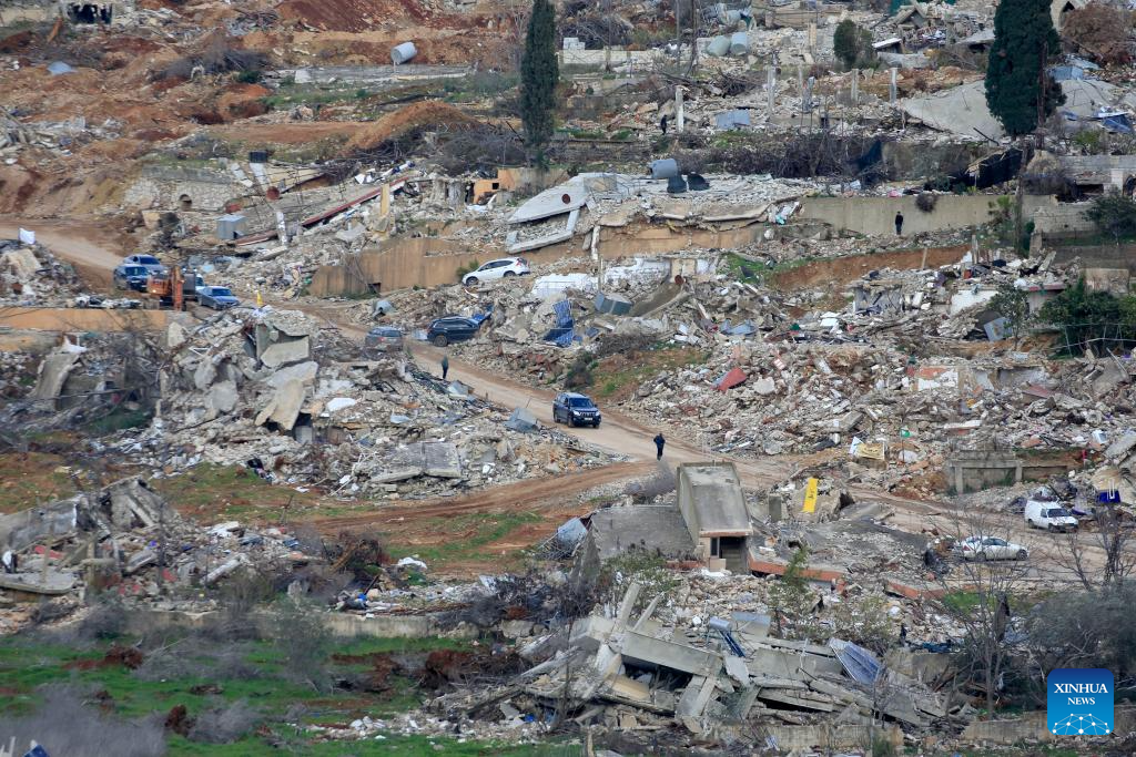 This photo shows ruins caused by Israel in Kafr Kila, Lebanon, Feb. 21, 2025. Kafr Kila is a border village subjected to some of the most systematic Israeli destruction during the clashes between Hezbollah and Israeli forces, which were fueled by the war in Gaza. (Photo by Ali Hashisho/Xinhua)