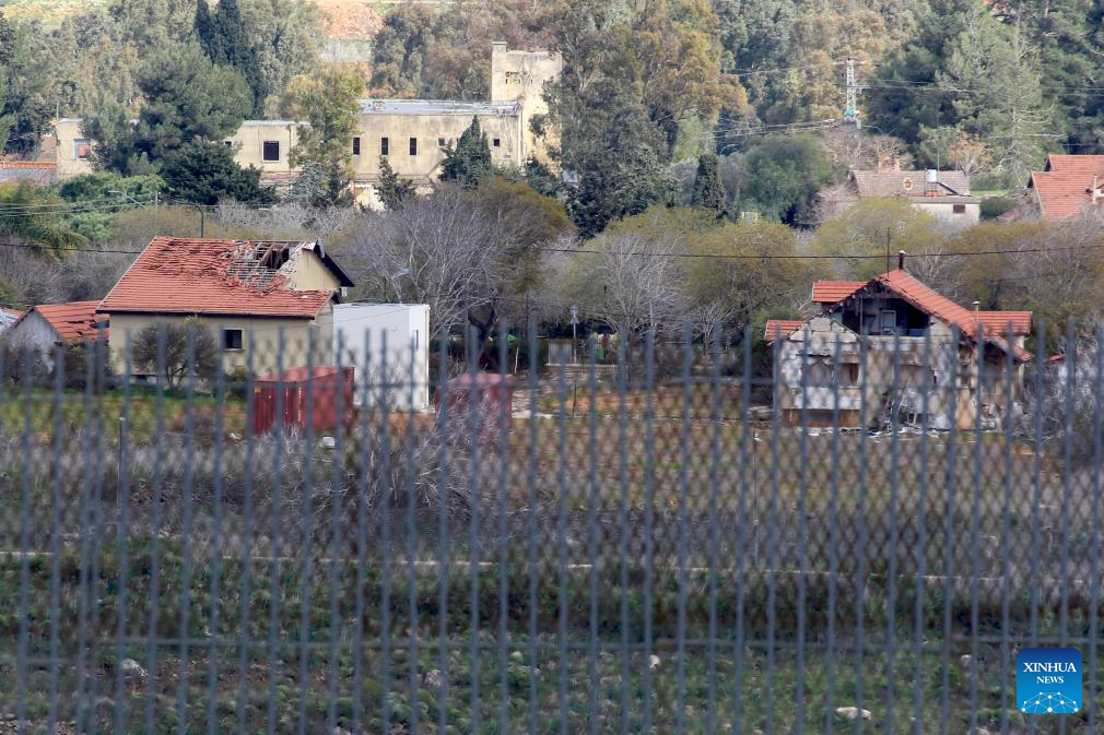 This photo shows the separation wall between the Israeli town of Metula and Kafr Kila of Lebanon, on Feb. 21, 2025. Kafr Kila is a border village subjected to some of the most systematic Israeli destruction during the clashes between Hezbollah and Israeli forces, which were fueled by the war in Gaza. (Photo by Ali Hashisho/Xinhua)