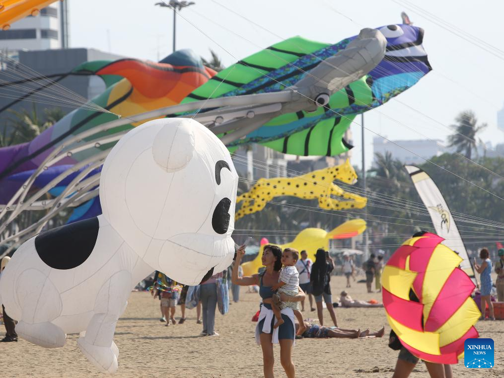 This photo taken on Feb. 26, 2025 shows kites flying on a beach in Pattaya, Thailand. Pattaya International Kite On The Beach 2025 kicked off here on Tuesday and will last until March 2. (Xinhua/Rachen Sageamsak)