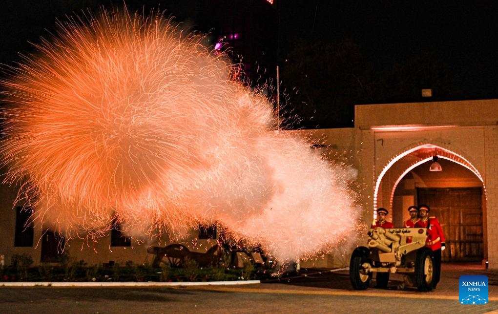 A canon is fired after the beginning of the fasting month of Ramadan was officially confirmed at Naif Palace in Kuwait City, Kuwait, on Feb. 28, 2025. Kuwait has officially confirmed that March 1 will mark the beginning of the fasting month of Ramadan for the year 2025. (Photo by Asad/Xinhua)