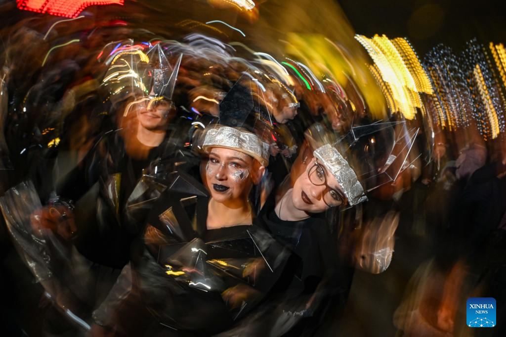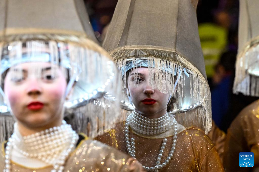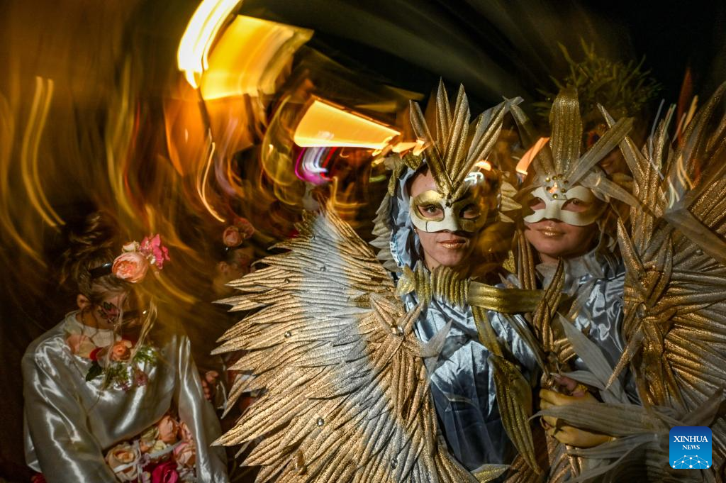 Revelers are seen during a carnival procession in the town of Strumica, southeastern North Macedonia, March 1, 2025. (Photo by Tomislav Georgiev/Xinhua)