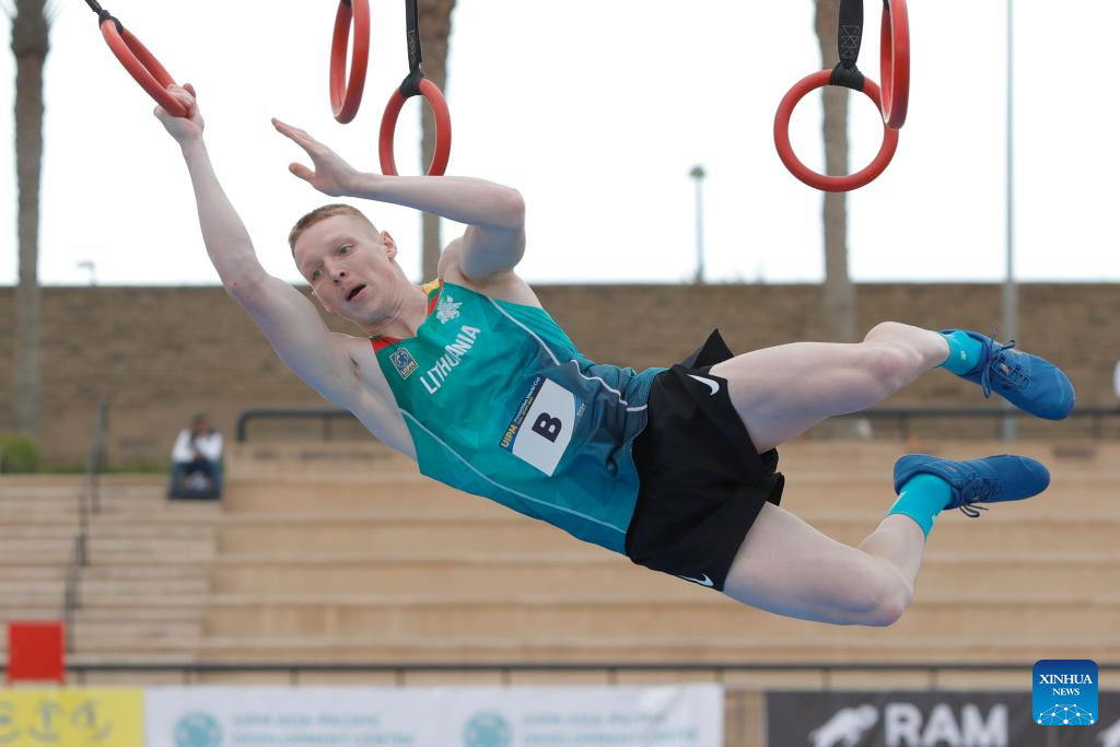 Paulius Vagnorius of Lithuania competes in the obstacle race during the men's final at the UIPM 2025 Pentathlon World Cup in Cairo, Egypt, March 1, 2025. (Xinhua/Ahmed Gomaa)