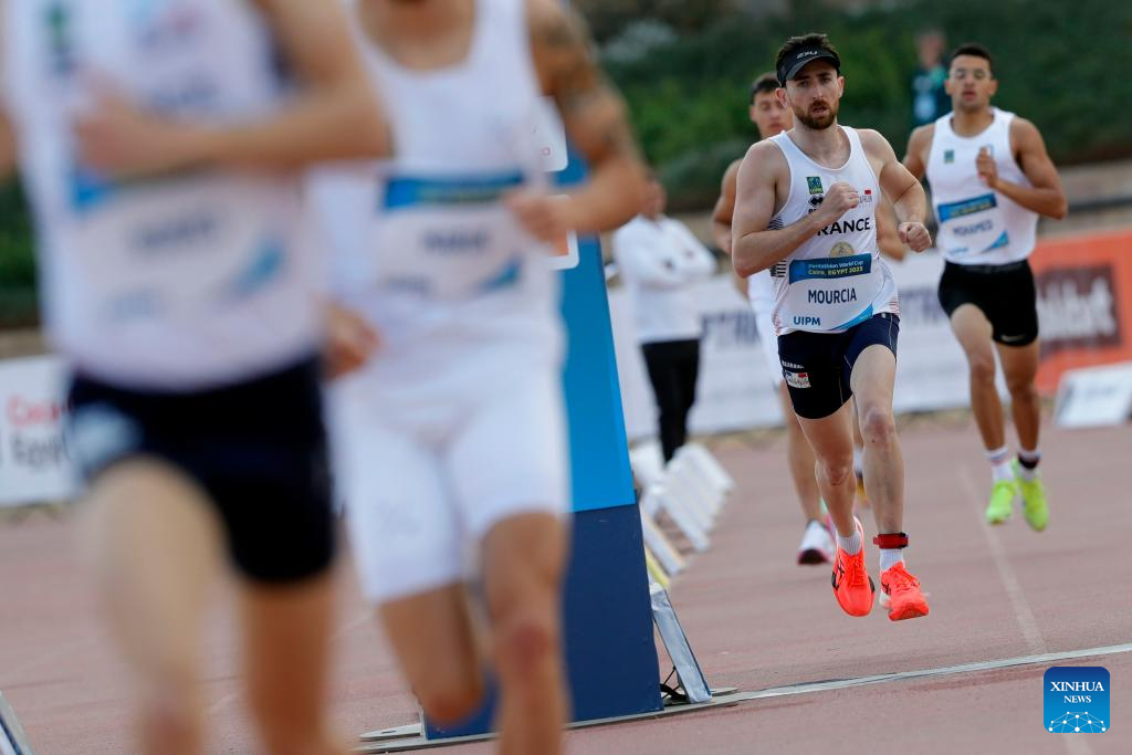 Jean-Baptiste Mourcia of France competes in the laser run during the men's final at the UIPM 2025 Pentathlon World Cup in Cairo, Egypt, March 1, 2025. (Xinhua/Ahmed Gomaa)