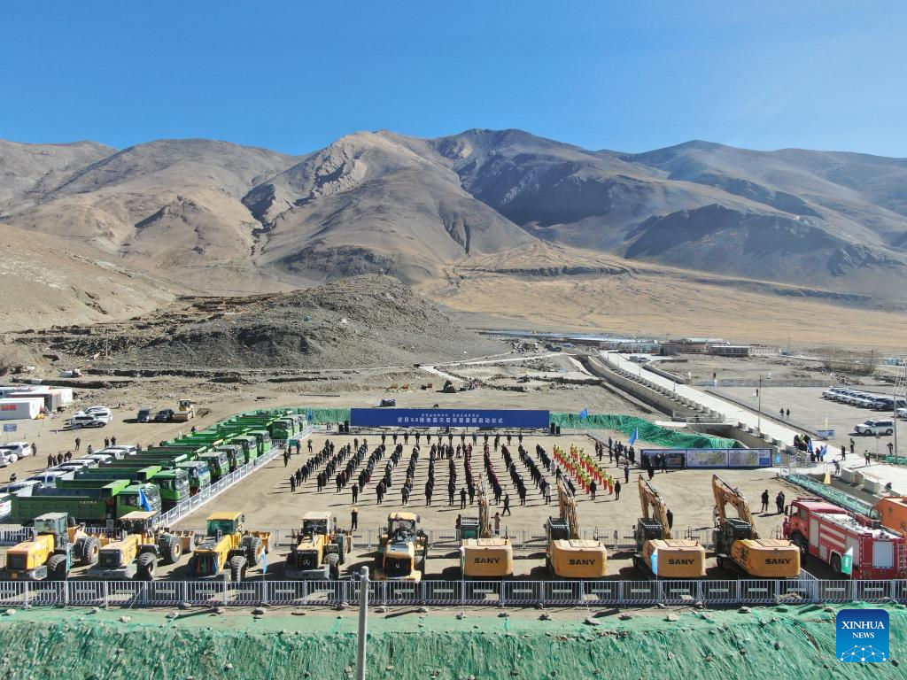 This photo shows a scene at the launch ceremony of the reconstruction work for eight quake-hit villages, at Gurum Village of Chamco Township in Dingri County, southwest China's Xizang Autonomous Region, March 3, 2025.