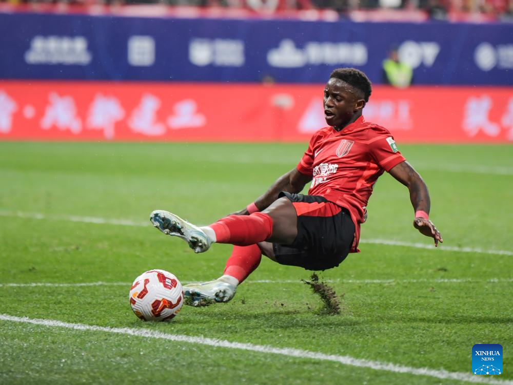 Issa Kallon of Chengdu Rongcheng competes during the 2nd round match between Chengdu Rongcheng and Tianjin Jinmen Tiger at the 2025 season Chinese Football Super League (CSL) in Chengdu, southwest China's Sichuan Province, March 2, 2025. (Xinhua/Wang Xi)