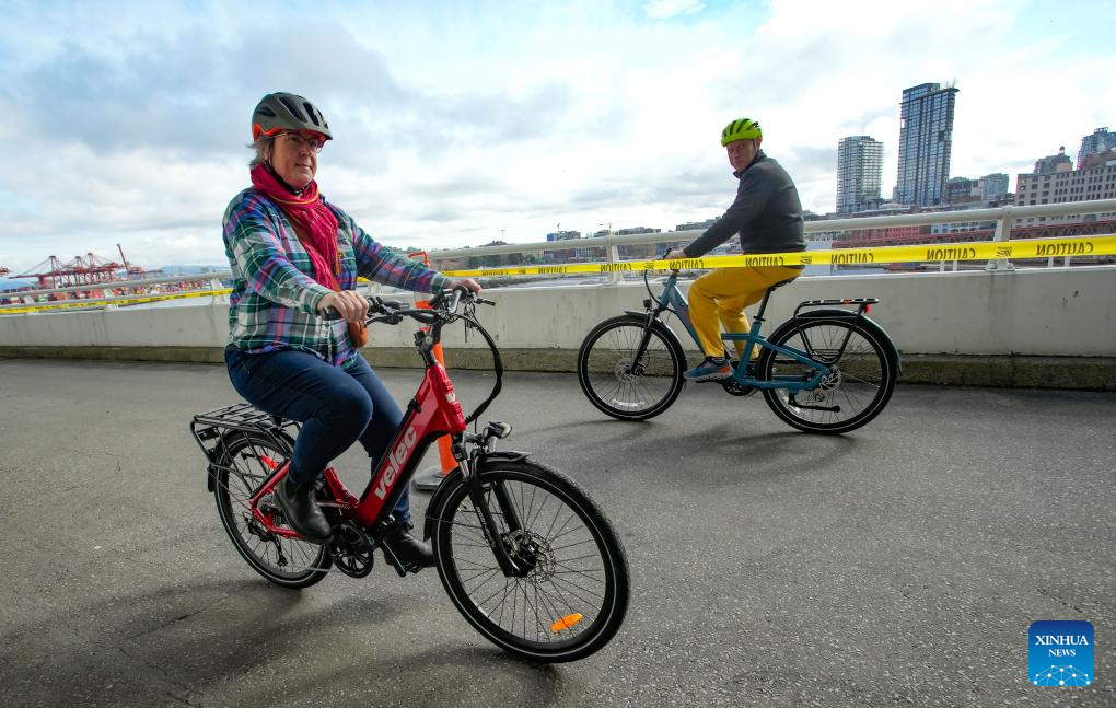 People take test rides at the 2025 BC Bike Show in Vancouver, British Columbia, Canada, March 2, 2025.