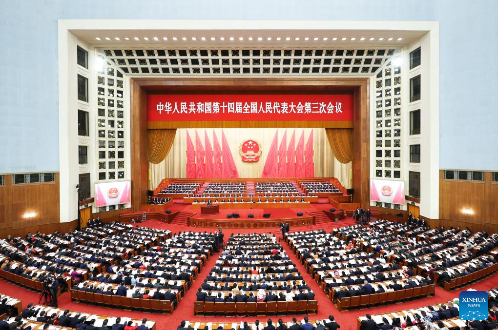 The opening meeting of the third session of the 14th National People's Congress (NPC) is held at the Great Hall of the People in Beijing, capital of China, March 5, 2025. (Xinhua/Ding Haitao)