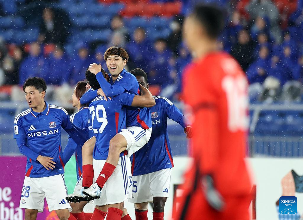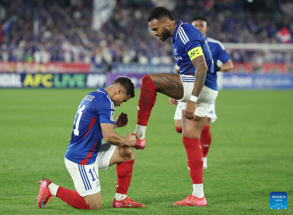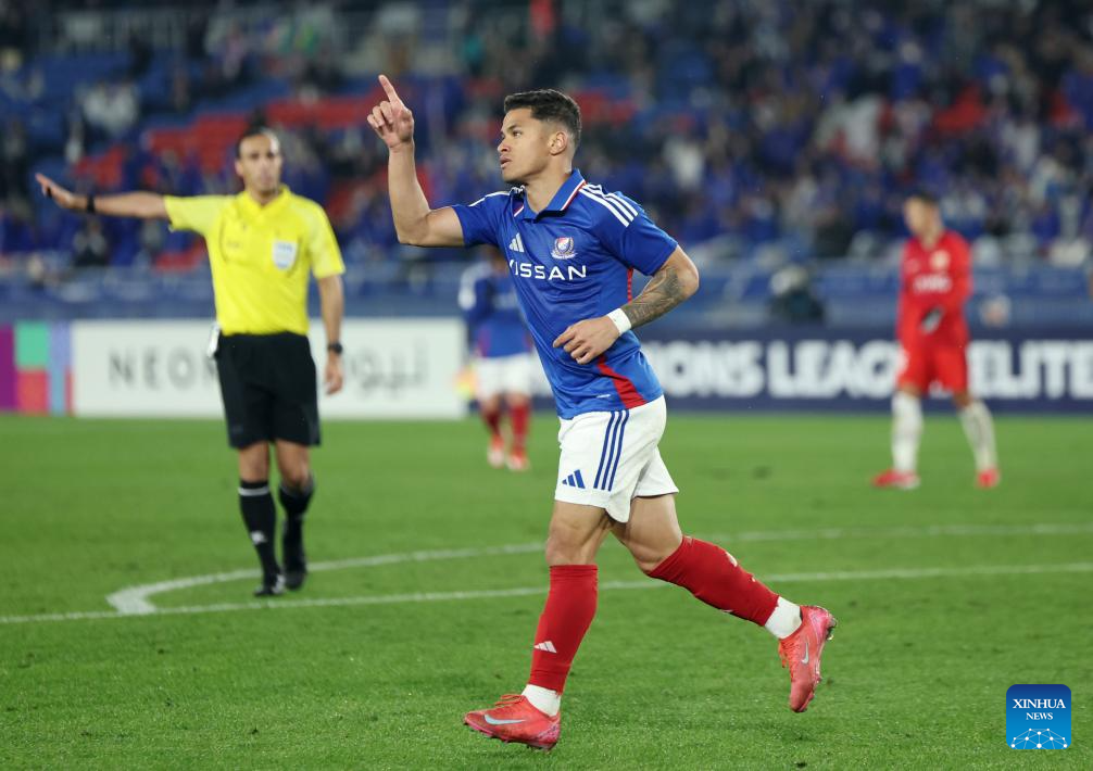 Yan Matheus of Yokohama F. Marinos celebrates his goal during the round of 16 second leg match of AFC Champions League Elite between Yokohama F. Marinos of Japan and Shanghai Port of China in Yokohama, Japan, March 11, 2025. (Xinhua/Jia Haocheng)