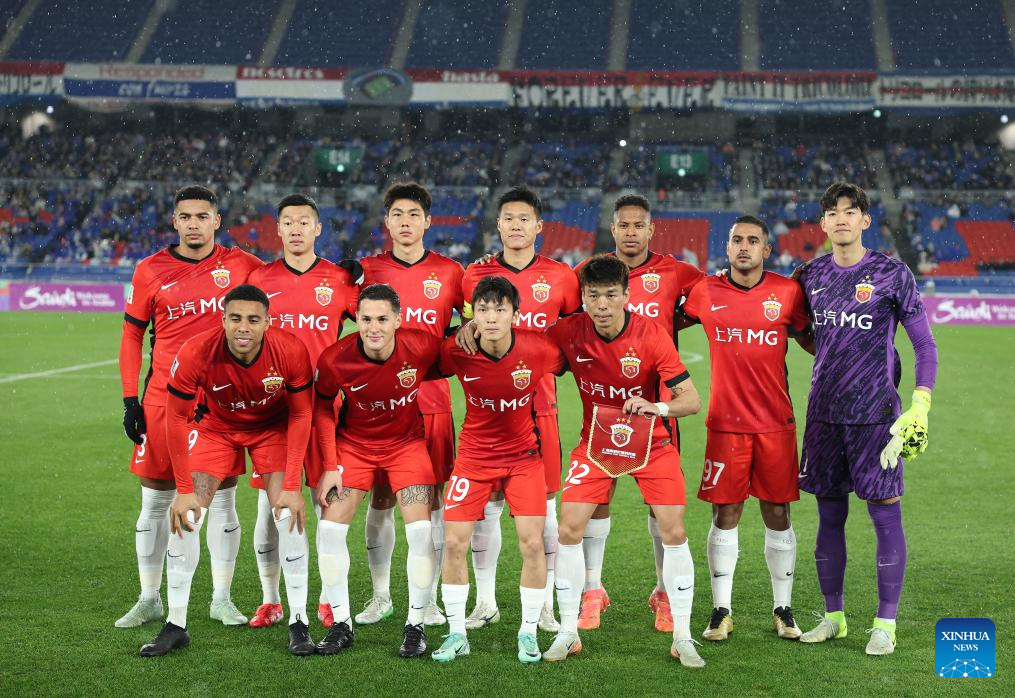 Players of Shanghai Port pose for a group photo before the round of 16 second leg match of AFC Champions League Elite between Yokohama F. Marinos of Japan and Shanghai Port of China in Yokohama, Japan, March 11, 2025. (Xinhua/Jia Haocheng)