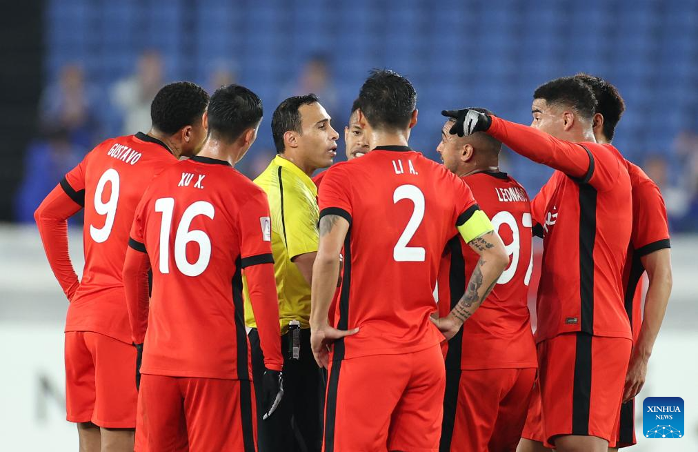 Players of Shanghai Port communicate with referee during the round of 16 second leg match of AFC Champions League Elite between Yokohama F. Marinos of Japan and Shanghai Port of China in Yokohama, Japan, March 11, 2025. (Xinhua/Jia Haocheng)