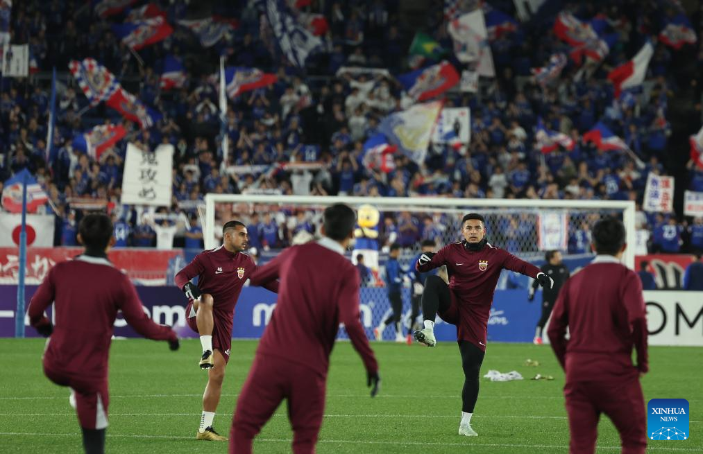 Jiang Guangtai (2nd R) of Shanghai Port warms up before the round of 16 second leg match of AFC Champions League Elite between Yokohama F. Marinos of Japan and Shanghai Port of China in Yokohama, Japan, March 11, 2025. (Xinhua/Jia Haocheng)