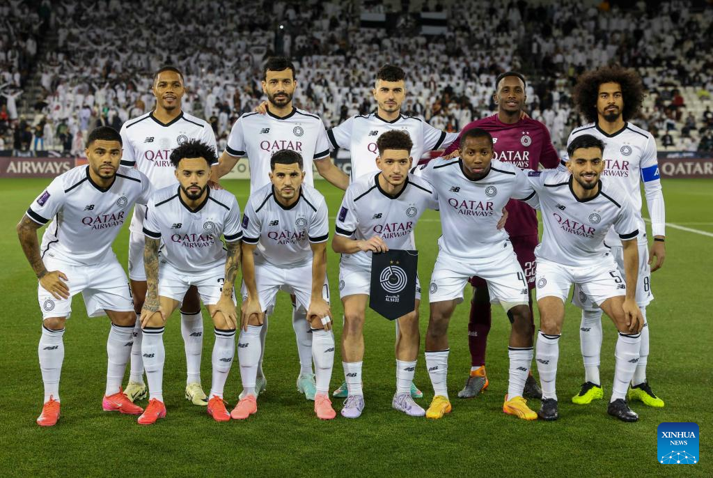 Al Sadd SC's players celebrate after winning the AFC Champions League Elite Round of 16 2nd Leg football match between Qatar's Al Sadd SC and United Arab Emirate's Al Wasl FC at Jassim Bin Hamad Stadium in Doha, Qatar, March 10, 2025. (Photo by Nikku/Xinhua)