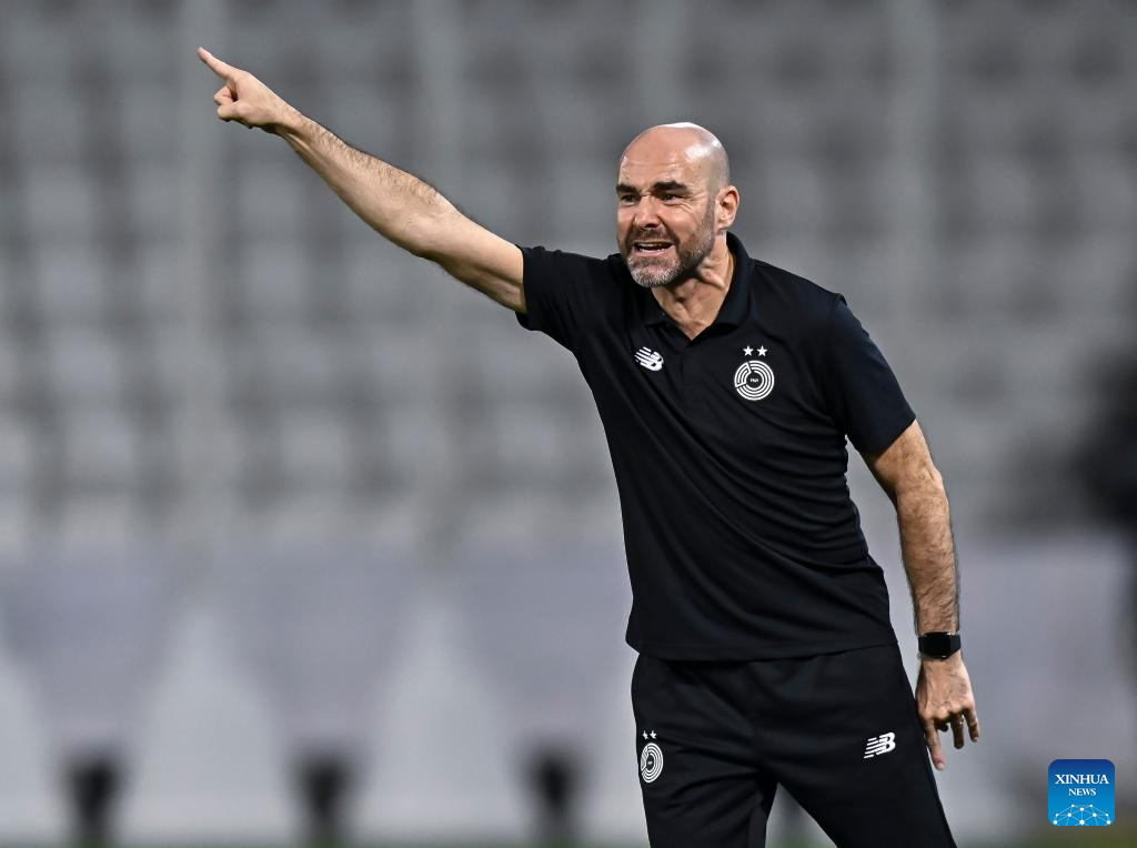 Felix Sanchez Bas, head Coach of Al Sadd SC, gestures during the AFC Champions League Elite Round of 16 2nd Leg football match between Qatar's Al Sadd SC and United Arab Emirate's Al Wasl FC at Jassim Bin Hamad Stadium in Doha, Qatar, March 10, 2025. (Photo by Nikku/Xinhua)