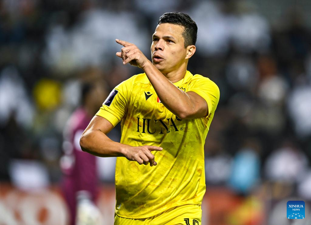 Fabio De Lima of Al Wasl FC celebrates after scoring during the AFC Champions League Elite Round of 16 2nd Leg football match between Qatar's Al Sadd SC and United Arab Emirate's Al Wasl FC at Jassim Bin Hamad Stadium in Doha, Qatar, March 10, 2025. (Photo by Nikku/Xinhua)