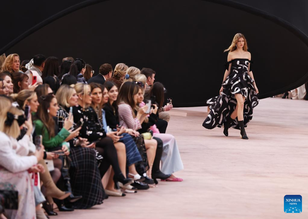 A model presents a creation of the ready-to-wear Fall/Winter 2025-2026 collections by French fashion house Chanel during the Paris Fashion Week, in Paris, France, on March 11, 2025. (Xinhua/Gao Jing)