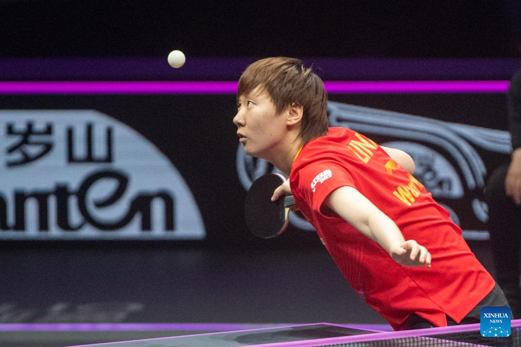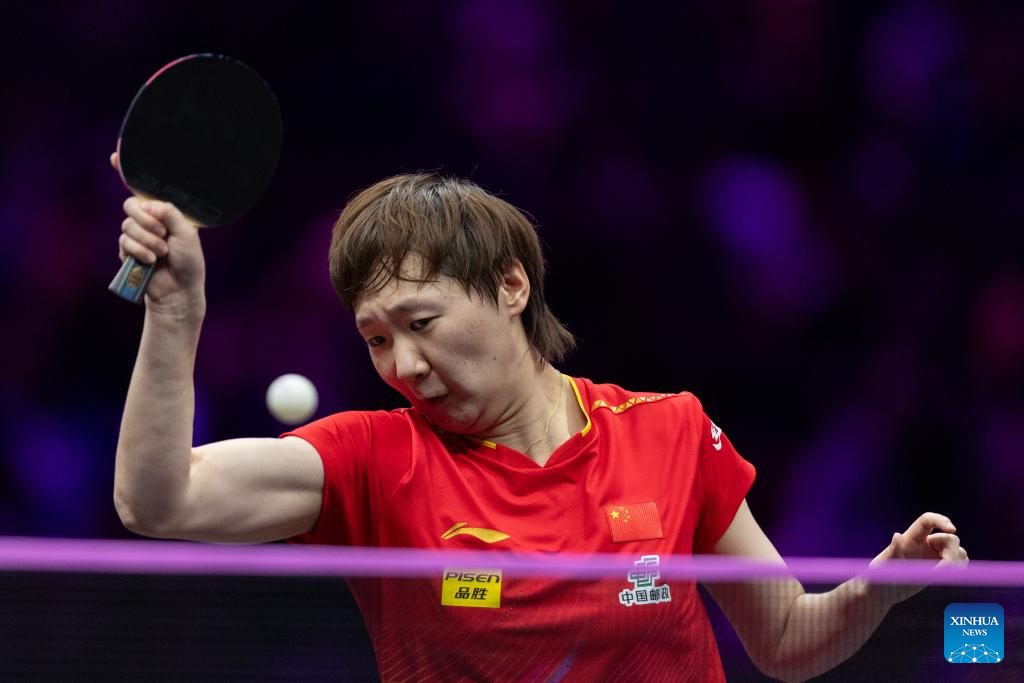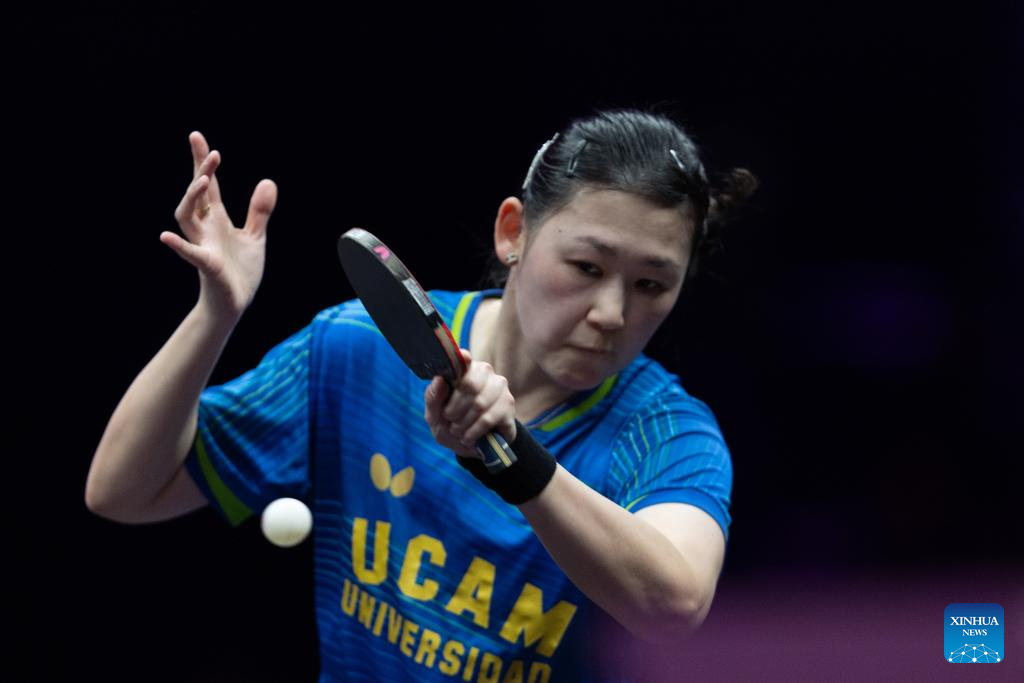 Maria Xiao hits a return during the women's singles round of 16 match between Kuai Man of China and Maria Xiao of Spain at the WTT Champions Chongqing 2025 in Chongqing, southwest China, March 14, 2025. (Xinhua/Huang Wei)